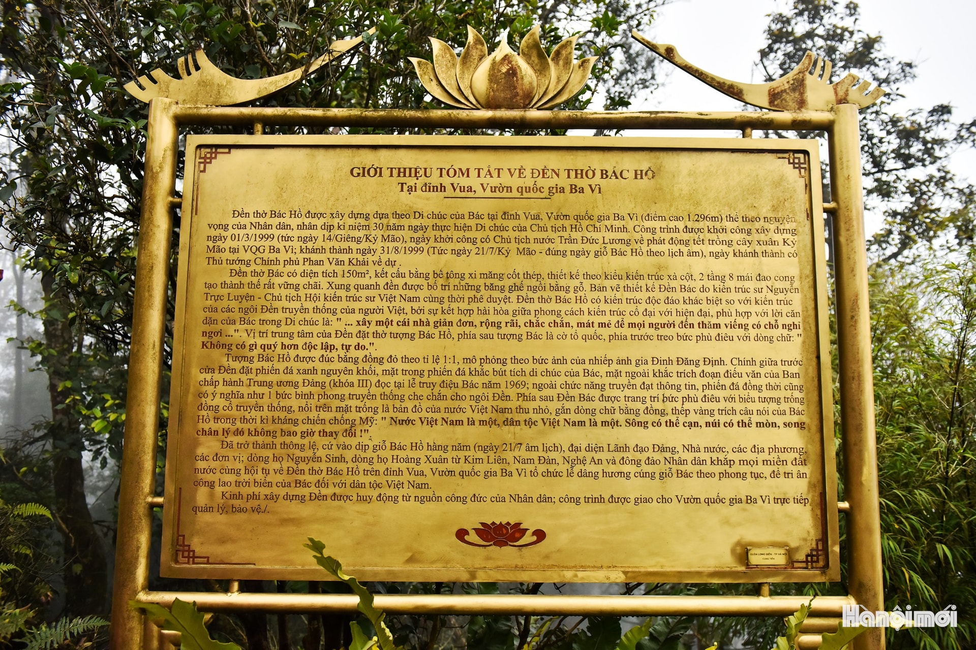 Tấm bảng đồng giới thiệu về Đền thờ Bác trên đỉnh Vua, Vườn quốc gia Ba Vì.