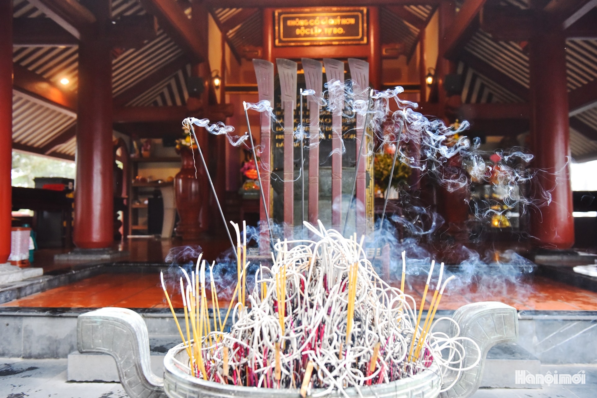 Trống đồng và bia đá - những biểu tượng văn hóa dân tộc được đặt trong Đền, gợi nhắc chiều dài lịch sử và tinh thần Việt Nam.