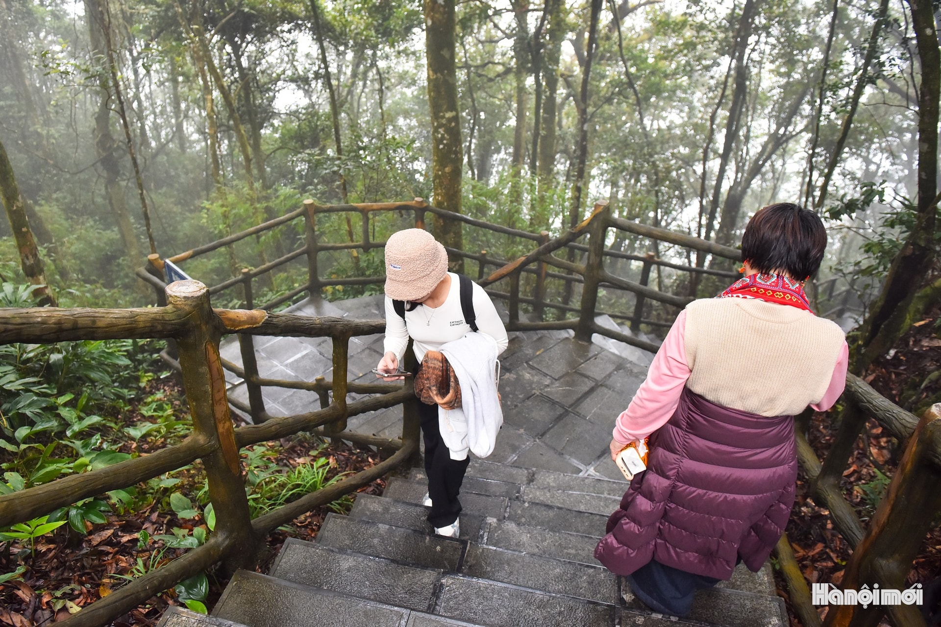 Sau hơn 1.320 bậc đá giữa rừng già mờ sương, từng nhịp thở gấp dần lắng lại.