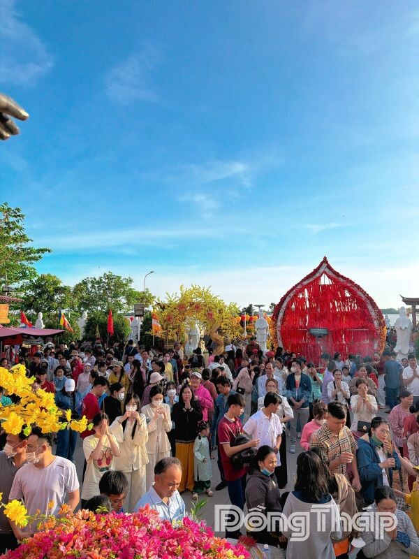 Tại chùa Liên Hoa (còn gọi là Mẹ Nam Hải Tiền Giang), tọa lạc tại xã Bình Ninh, tỉnh Đồng Tháp, ngay từ sáng sớm mùng 1 Tết, dòng người đã đông đúc đổ về viếng chùa, thắp hương cầu an. Trong ngày, chùa đã tiếp đón hơn 20.000 lượt phật tử và người dân từ khắp nơi đến tham quan, lễ bái (tăng gấp đôi so với mùng 1 tết năm ngoái). Ngoài không gian thờ phụng trang nghiêm, phật tử và du khách còn được check-in tại các tiểu cảnh trang trí đón xuân được thiết kế độc đáo, thu hút nhiều người lưu lại kỷ niệm.