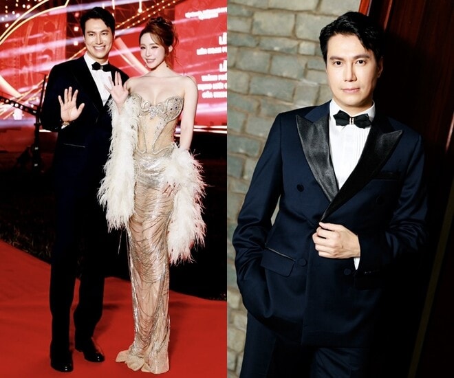 Việt Anh - Quỳnh Nga như cô dâu chú rể, tay trong tay trên thảm đỏ.