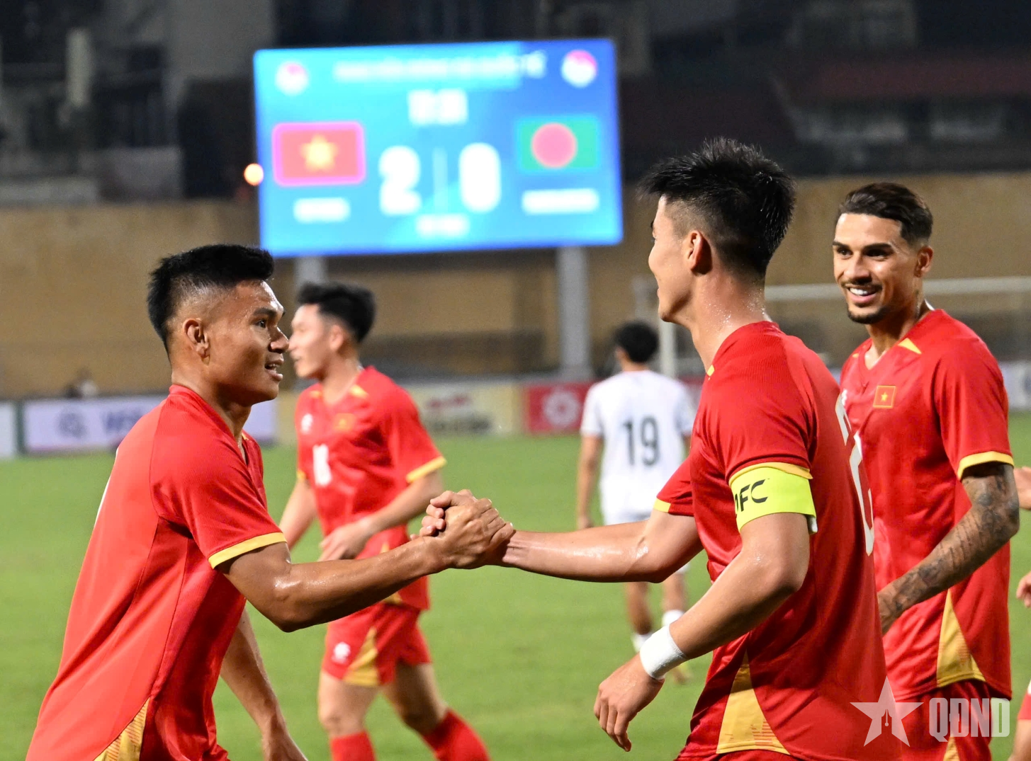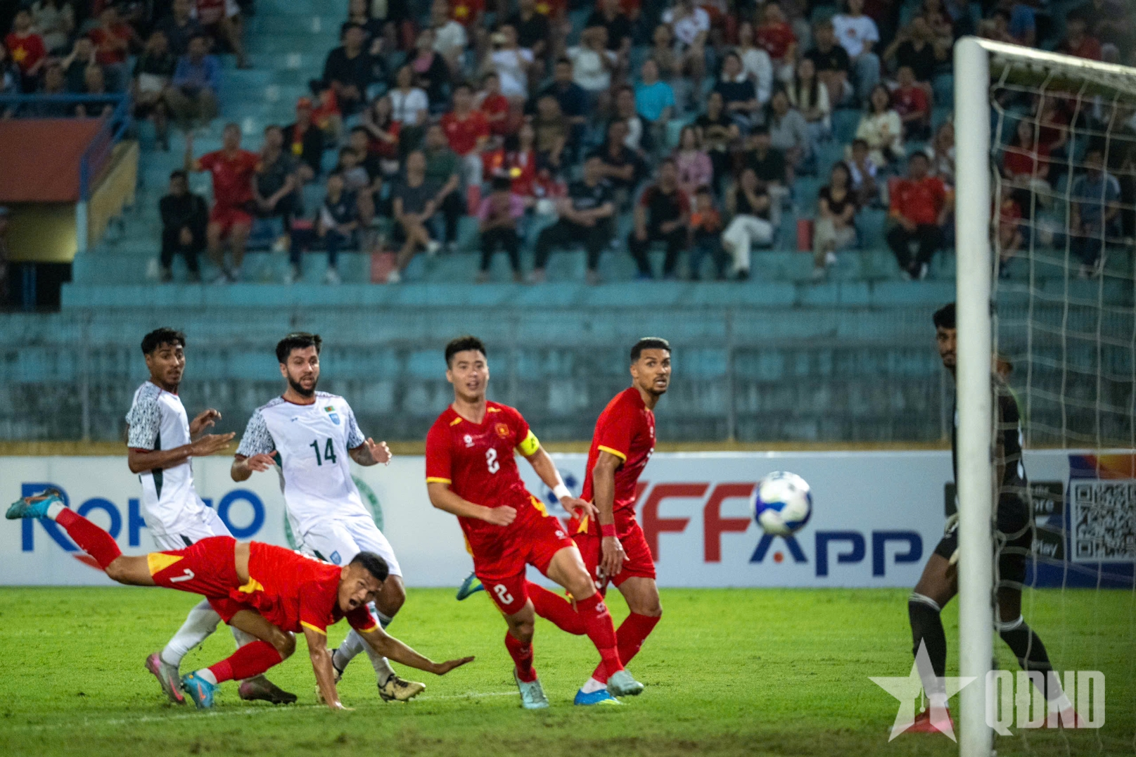Vẫn là Quang Hải với pha treo bóng chuẩn xác, các cầu thủ băng cắt khiến hàng thủ Bangladesh chững lại. Xuân Mạnh xuất hiện đúng điểm rơi, dứt điểm gọn gàng nâng tỷ số lên 2-0.