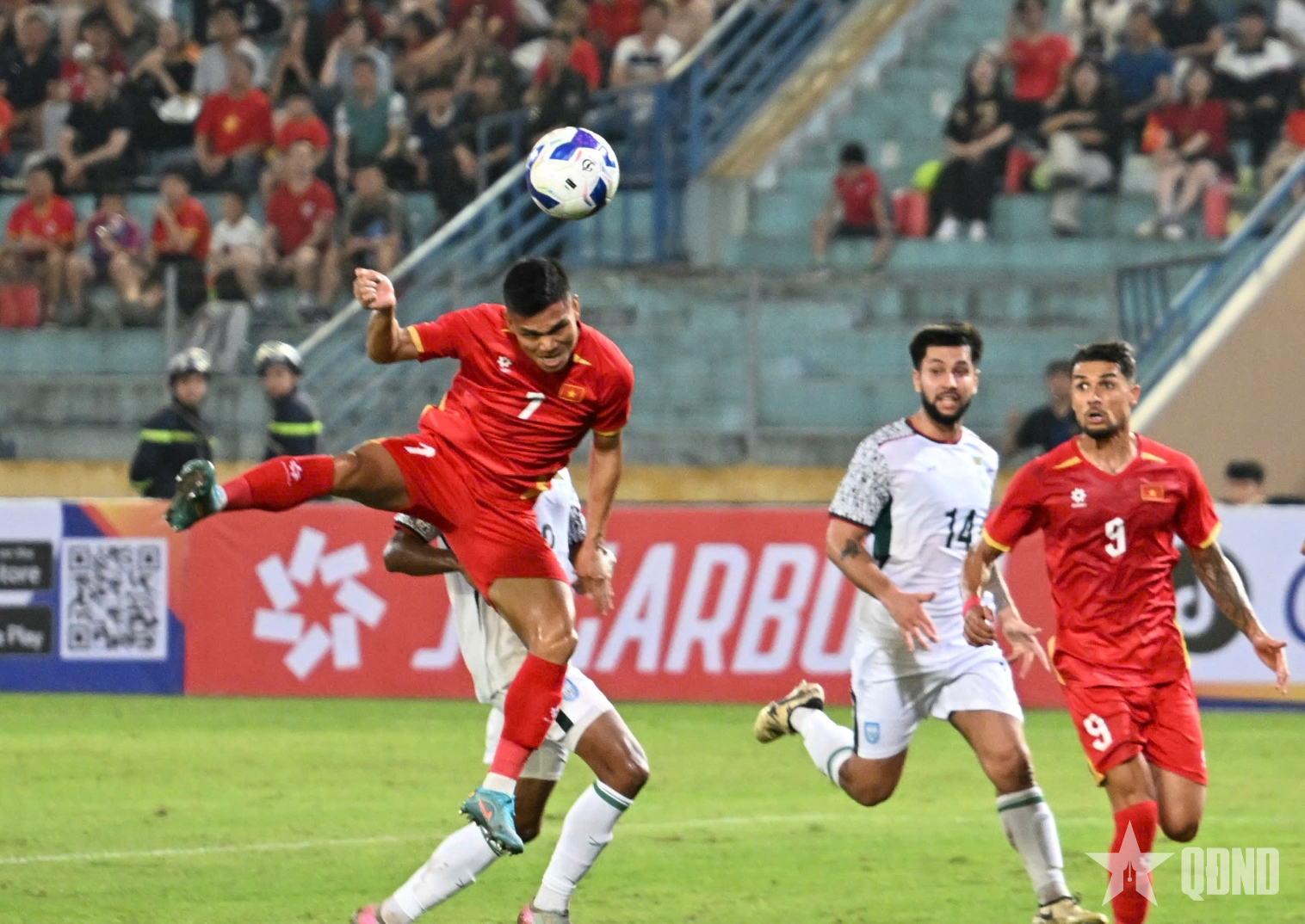 Từ tình huống bứt tốc và căng ngang thuận lợi của Khuất Văn Khang, tiền đạo này không thể dứt điểm thành công. Ngay sau đó, Xuân Son tiếp tục có pha xử lý mạnh mẽ bên ngoài vòng cấm, tung cú sút đưa bóng đi chệch cột dọc trong gang tấc.