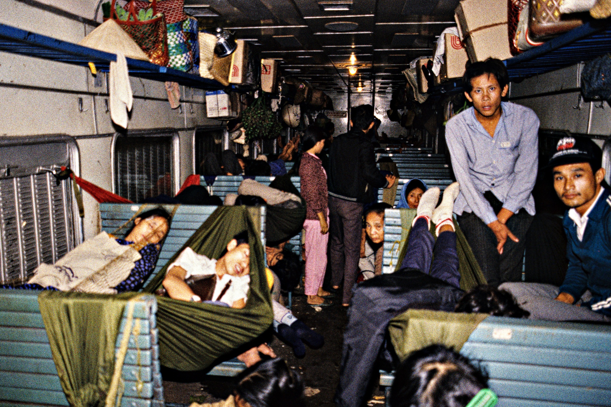Cuối thập niên 1980 - 1990, ghế trên tàu chủ yếu vẫn là ghế cứng. Với những hành trình dài, nhiều hành khách mang theo võng, buộc tạm giữa các băng ghế để ngả lưng, biến khoang tàu thành "chuyến tàu mắc võng" độc đáo.
