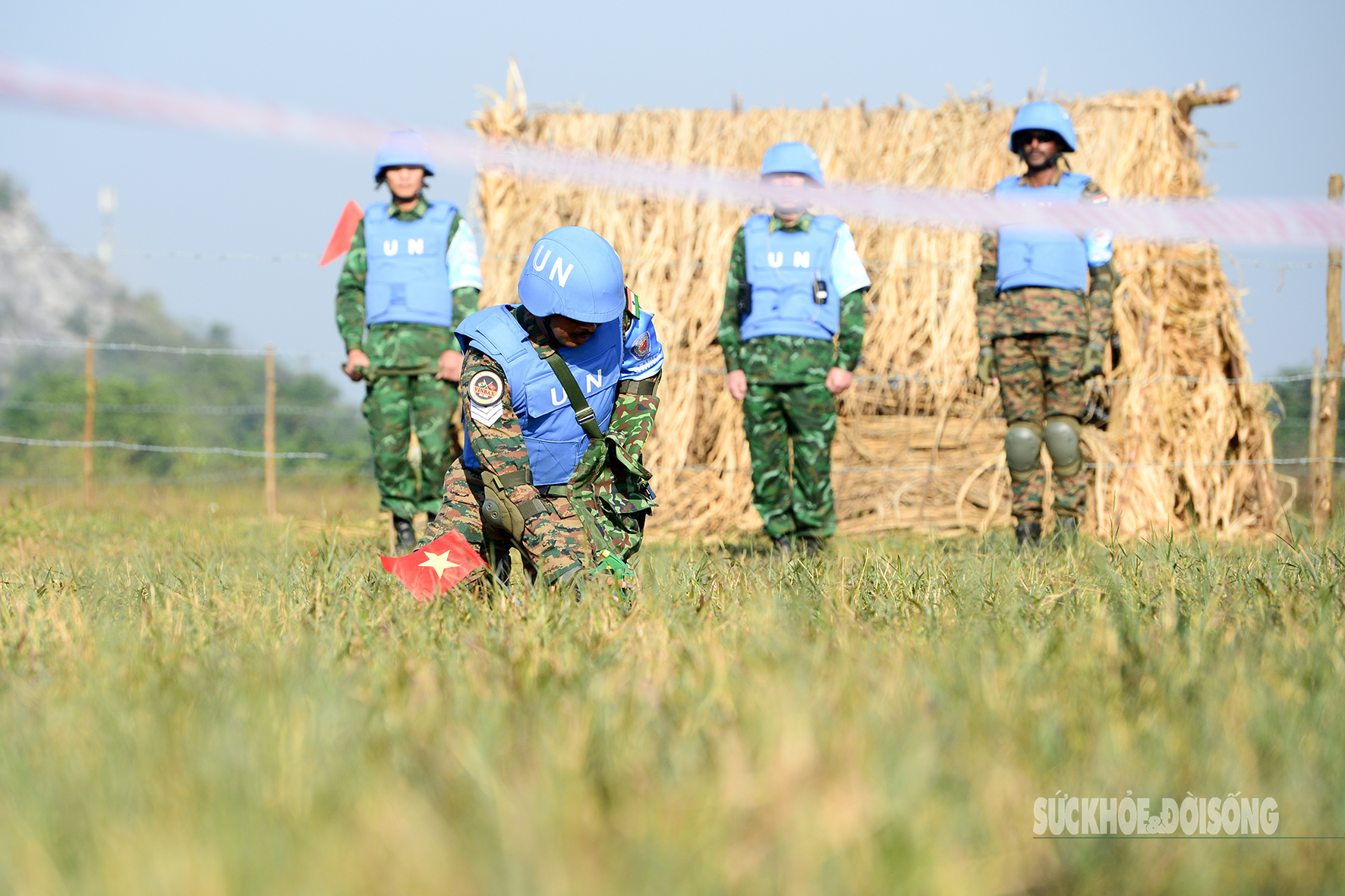 Trong bối cảnh khu vực gần doanh trại chuẩn bị được UNICEF hỗ trợ xây dựng trường học, Đội Công binh nhận nhiệm vụ khảo sát, rà tìm và xử lý mìn chống bộ binh phải hủy nổ tại chỗ.