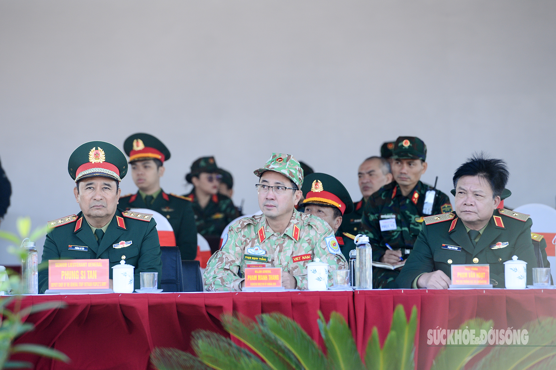 Thượng tướng Phùng Sĩ Tấn và các đại biểu dự buổi trình diễn tình huống tích hợp trên thực địa trong khuôn khổ VINBAX 2025.