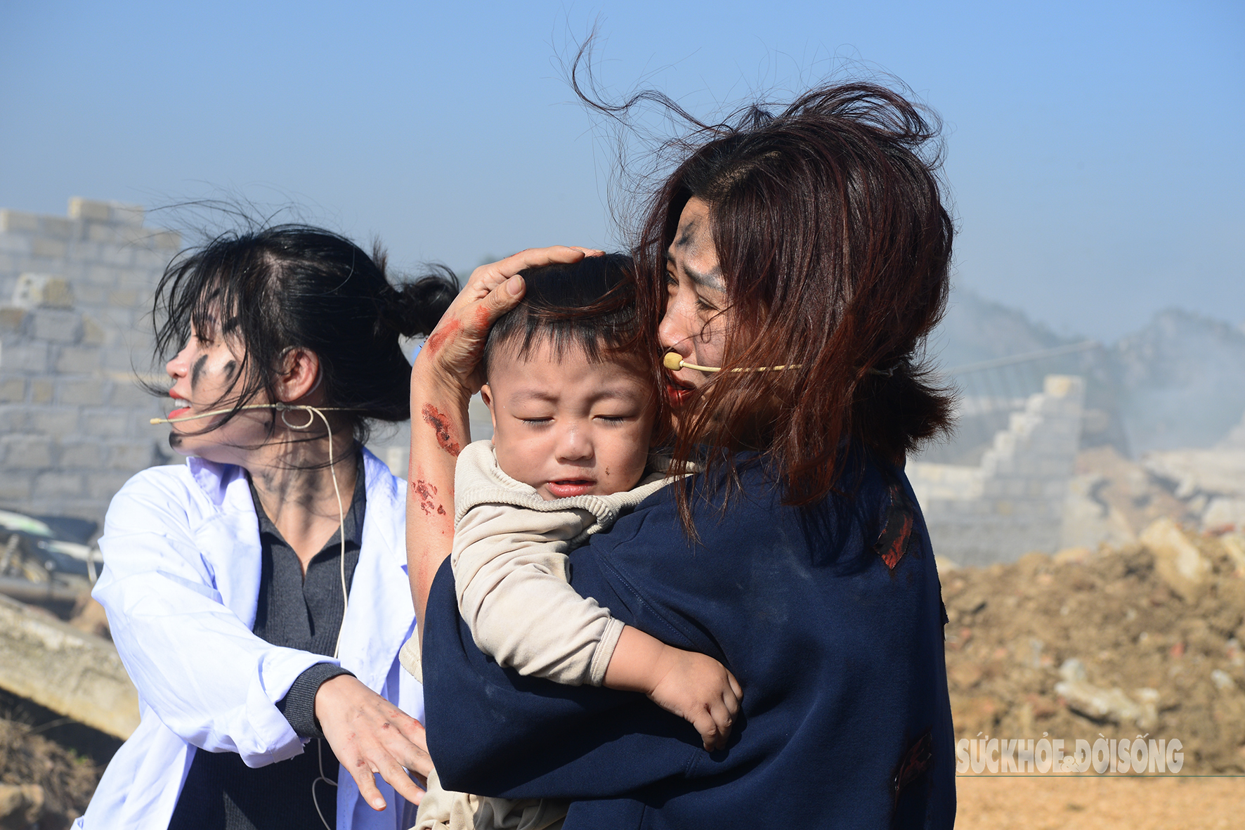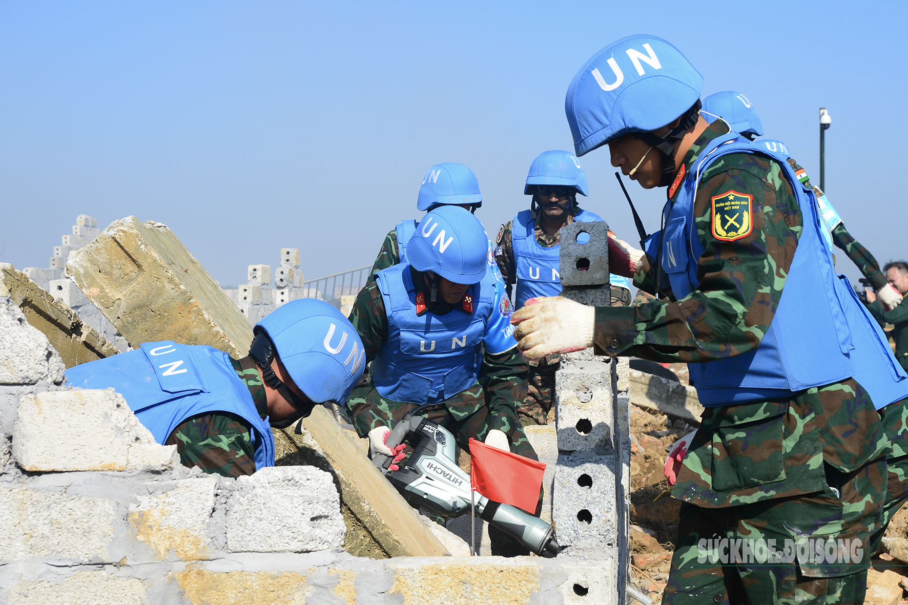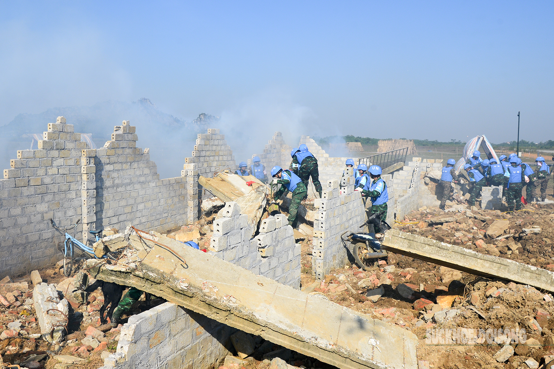 Theo giả định, một trận động đất 6 độ richter khiến Bệnh viện do UNICEF hỗ trợ xây dựng bị sập, nhiều người mắc kẹt bên trong. Lực lượng Công binh triển khai: Tổ trinh sát; Tổ chó nghiệp vụ; Hai tổ cứu sập; Tổ quân y. Sau khi dùng flycam thu thập dữ liệu, các tổ tiếp cận hiện trường, tìm kiếm nạn nhân, mở lối cứu hộ và đưa người bị nạn ra ngoài.