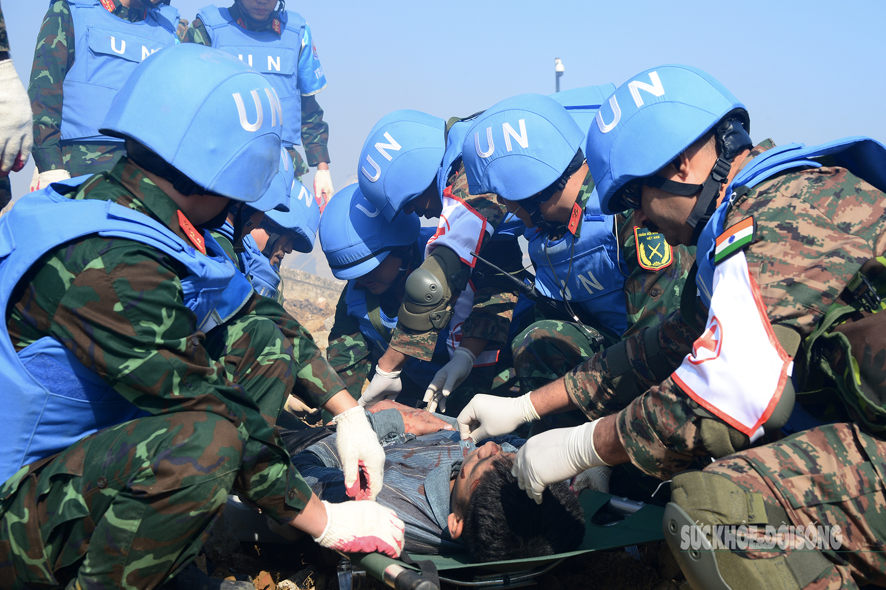 Buổi trình diễn mô phỏng ba nhóm tình huống trọng tâm các đơn vị gìn giữ hòa bình Liên hợp quốc thường đối mặt: Rà phá bom mìn – xử trí thương vong; Giải tán đám đông quá khích cáo buộc nhân viên Liên hợp quốc; Cứu hộ cứu nạn sau động đất và vận chuyển y tế đường không.