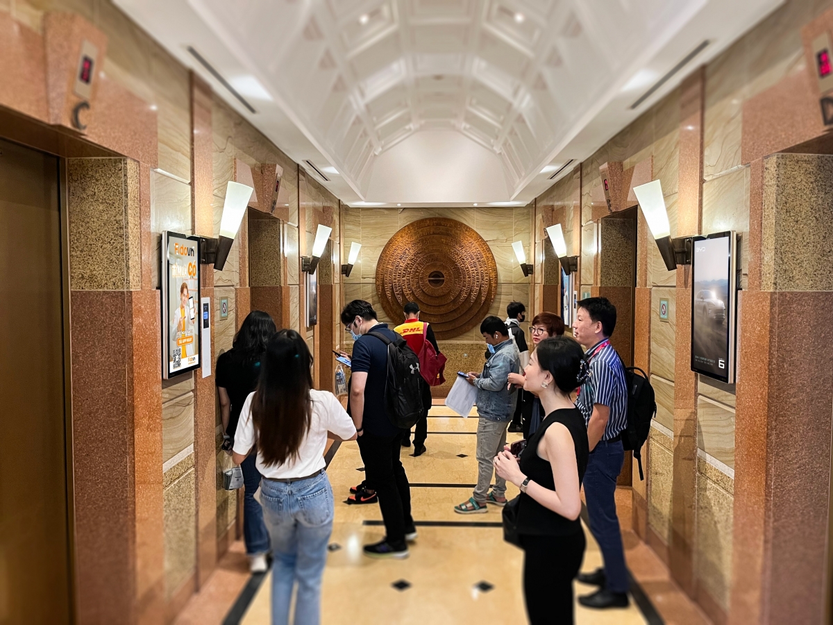 Sảnh tòa nhà văn phòng cao tầng với quảng cáo thang máy (Ảnh: Website Focus Media Việt Nam)