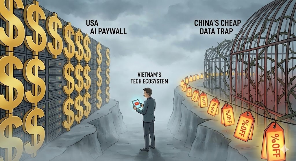 Thực tế tàn khốc là hệ sinh thái AI của Việt Nam đang bị kẹp chặt giữa hai gọng kìm khổng lồ. Một bên là các mô hình "kín cổng cao tường" đắt đỏ nhưng thống trị tuyệt đối của Mỹ như GPT-4 hay Claude. Một bên là làn sóng mô hình "giá rẻ giật mình" nhưng đầy nghi vấn về nguồn gốc và an ninh từ Trung Quốc, điển hình như sự trỗi dậy của DeepSeek.
