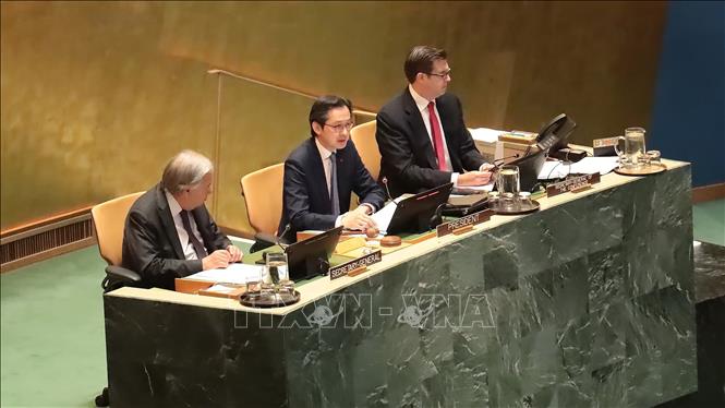Đại sứ Đỗ Hùng Việt, Chủ tịch Hội nghị, điều hành phiên khai mạc. Ảnh: TTXVN