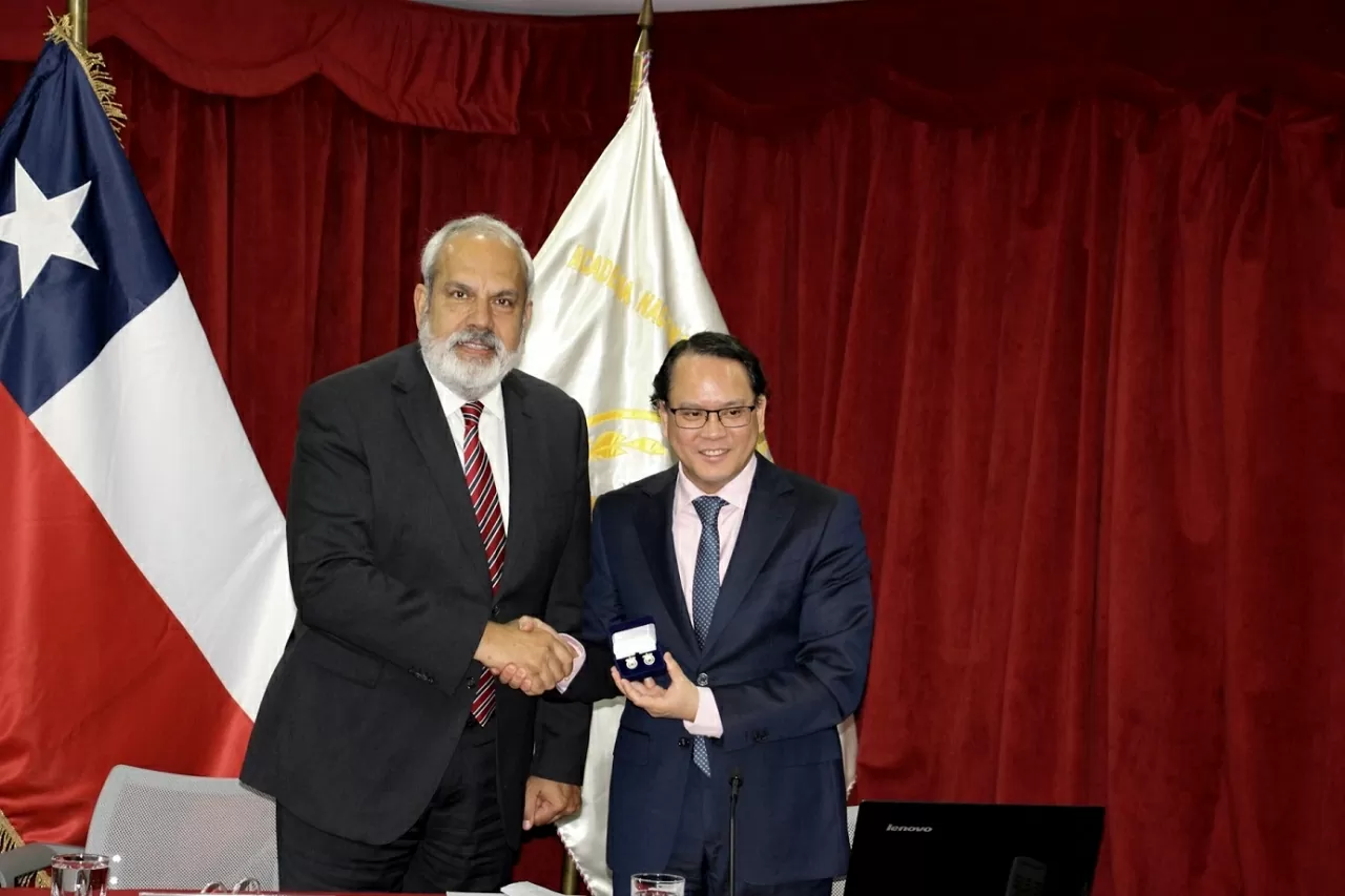 Đại sứ, Tiến sĩ Nguyễn Việt Cường và Phó Đô đốc Ronald McIntyre Astorga - Viện trưởng ANEPE. (Nguồn: Đại sứ quán Việt Nam tại Chile)