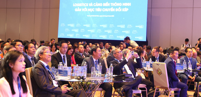 Tọa đàm “Logistics và cảng biển thông minh gắn với mục tiêu chuyển đổi kép” thu hút sự chú ý của nhiều chuyên gia, khách mời. (Ảnh: Hứa Chung/TTXVN)