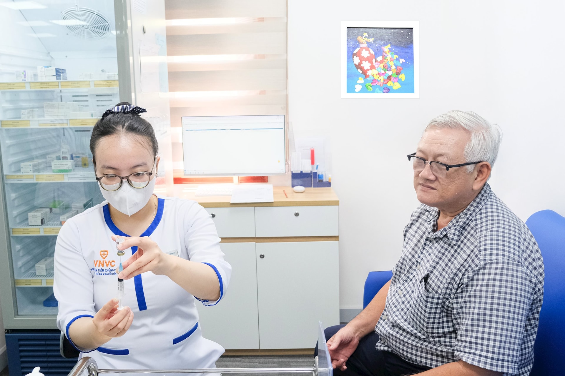 Ông Nguyễn Thái Hiệp, ở TP. HCM, cũng là người tiêm vắc xin RSV của GSK tại Hệ thống Tiêm chủng VNVC ngay trong ngày đầu tiên ra mắt. Ảnh: Nhân Lê.