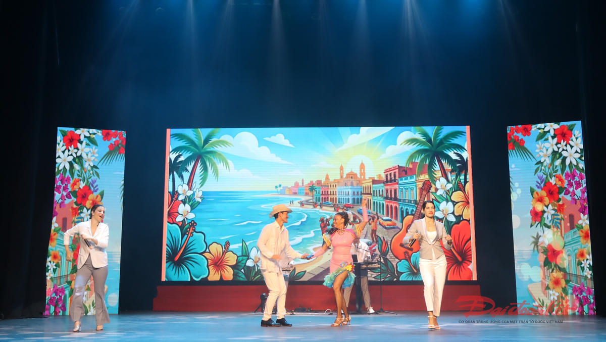 Tiết mục văn nghệ có sự tham gia của các nghệ sĩ Cuba và Việt Nam tại lễ kỷ niệm. Ảnh: Hồng Phúc.