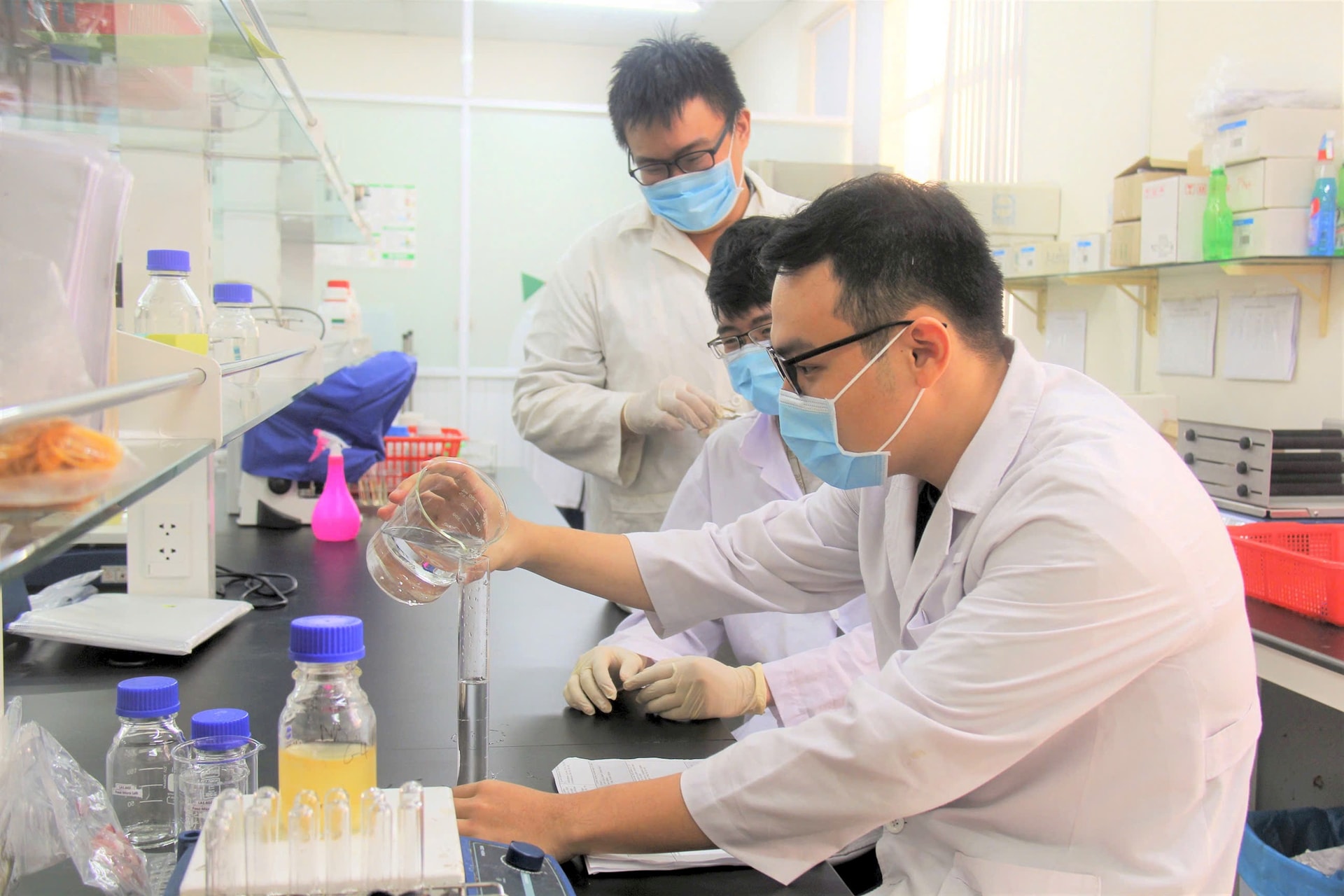 Sinh viên đang thực hành nghành công nghệ sinh học. Ảnh: Nghiêm Ý