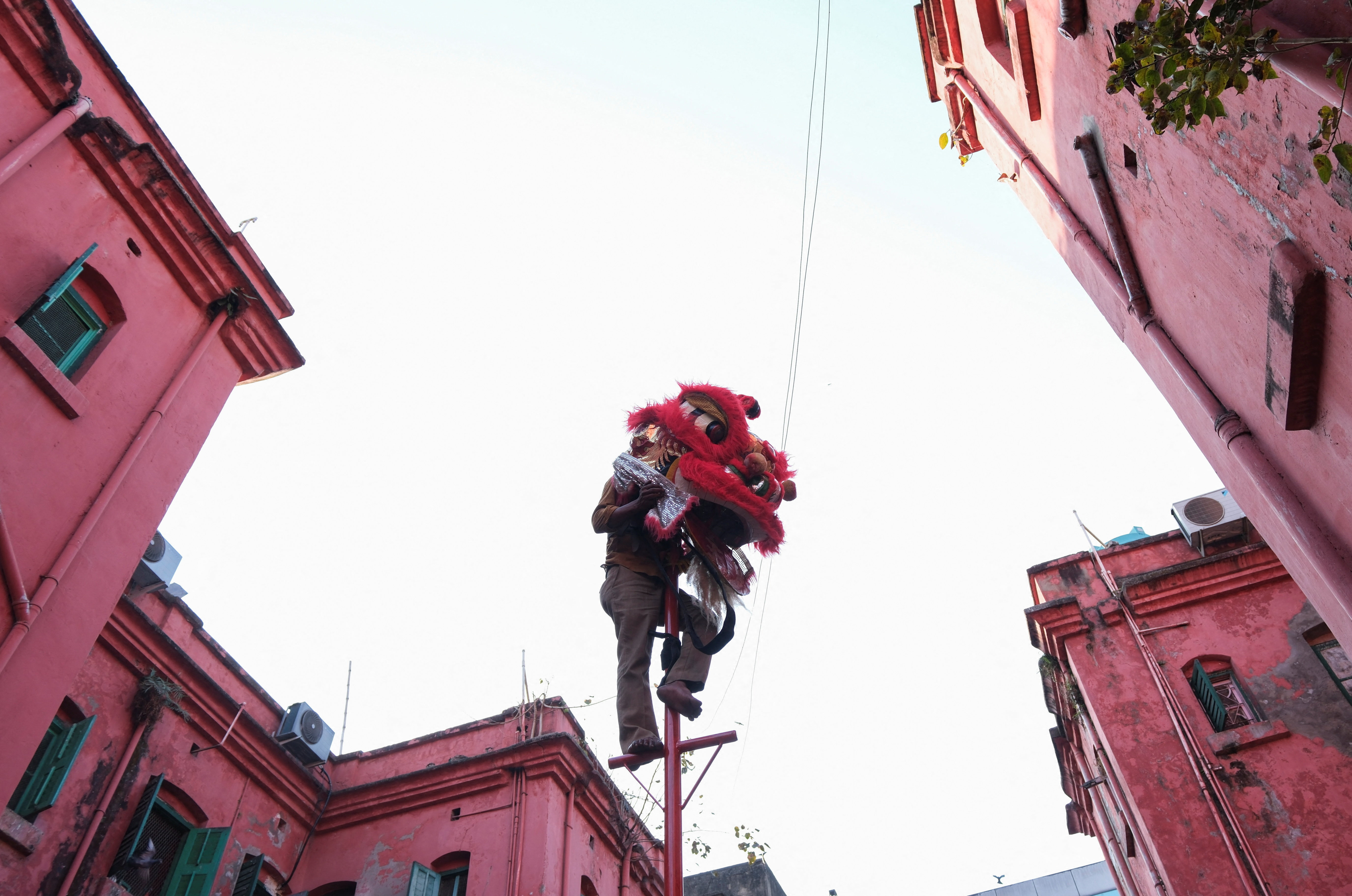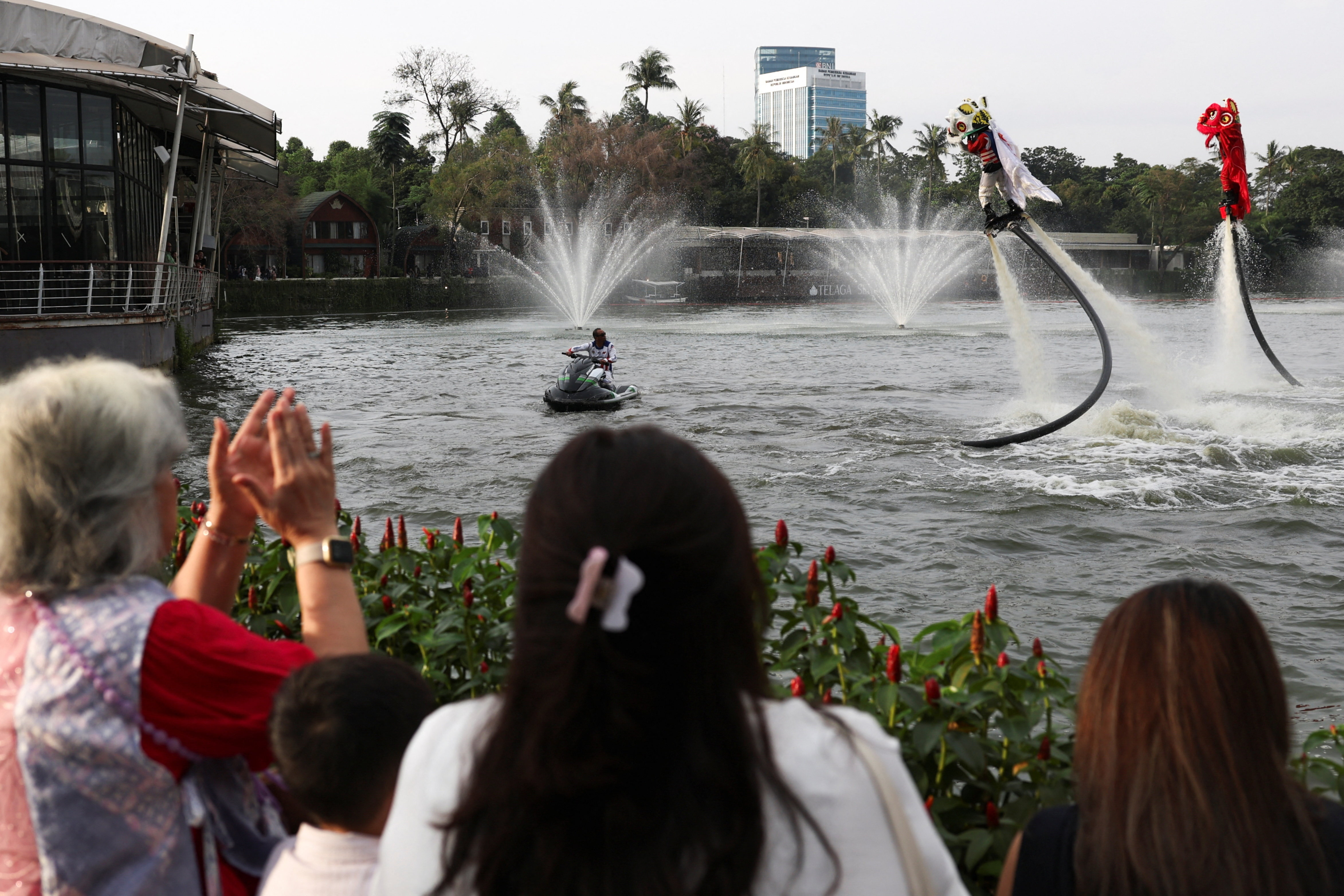 Lễ hội múa lân trên nước mừng năm mới ở Indonesia.