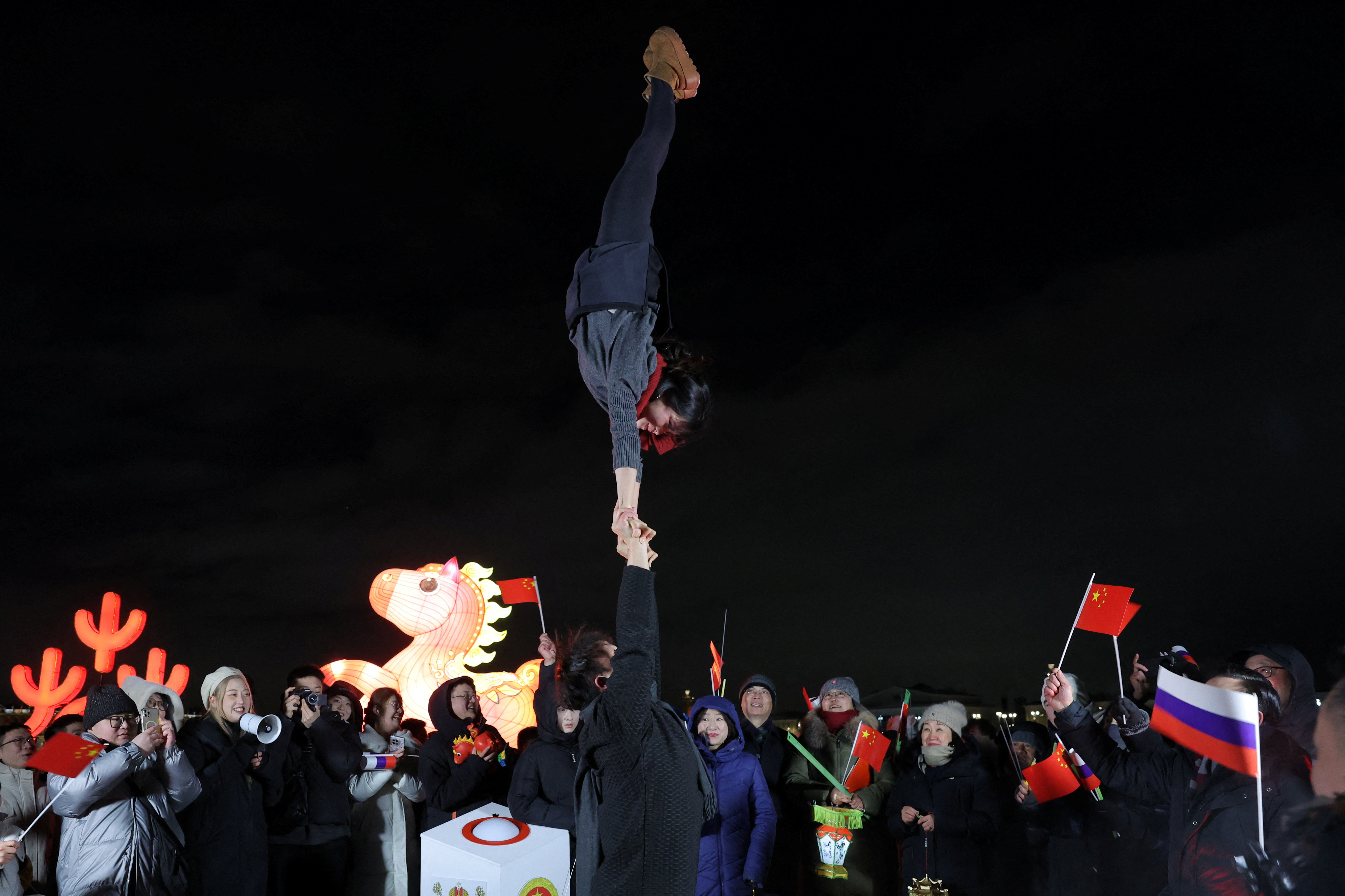 Người dân tham gia lễ hội Tết Nguyên đán tại trung tâm thành phố Saint Petersburg, Nga, ngày 15/2.