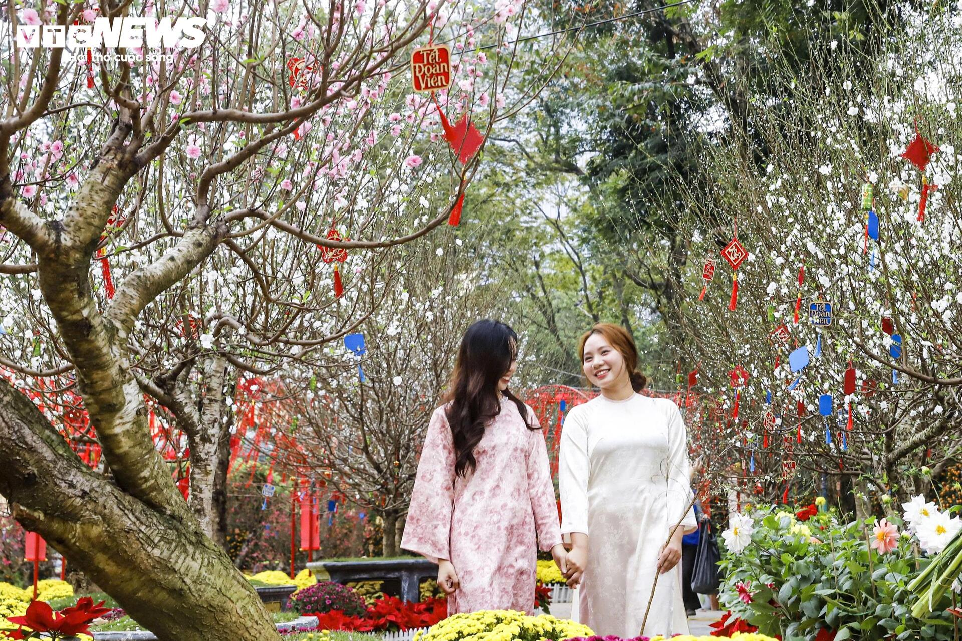 Hàng trăm gốc đào, quất cảnh và tiểu cảnh xuân rực rỡ biến khu vực hồ Gươm thành điểm check-in thu hút đông người dân, du khách.