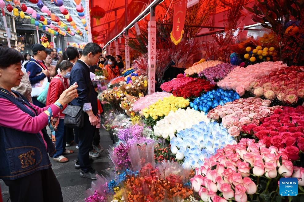 Người dân chụp ảnh trong một chợ hoa ở quận Yuexiu, Quảng Châu, tỉnh Quảng Đông, miền nam Trung Quốc.