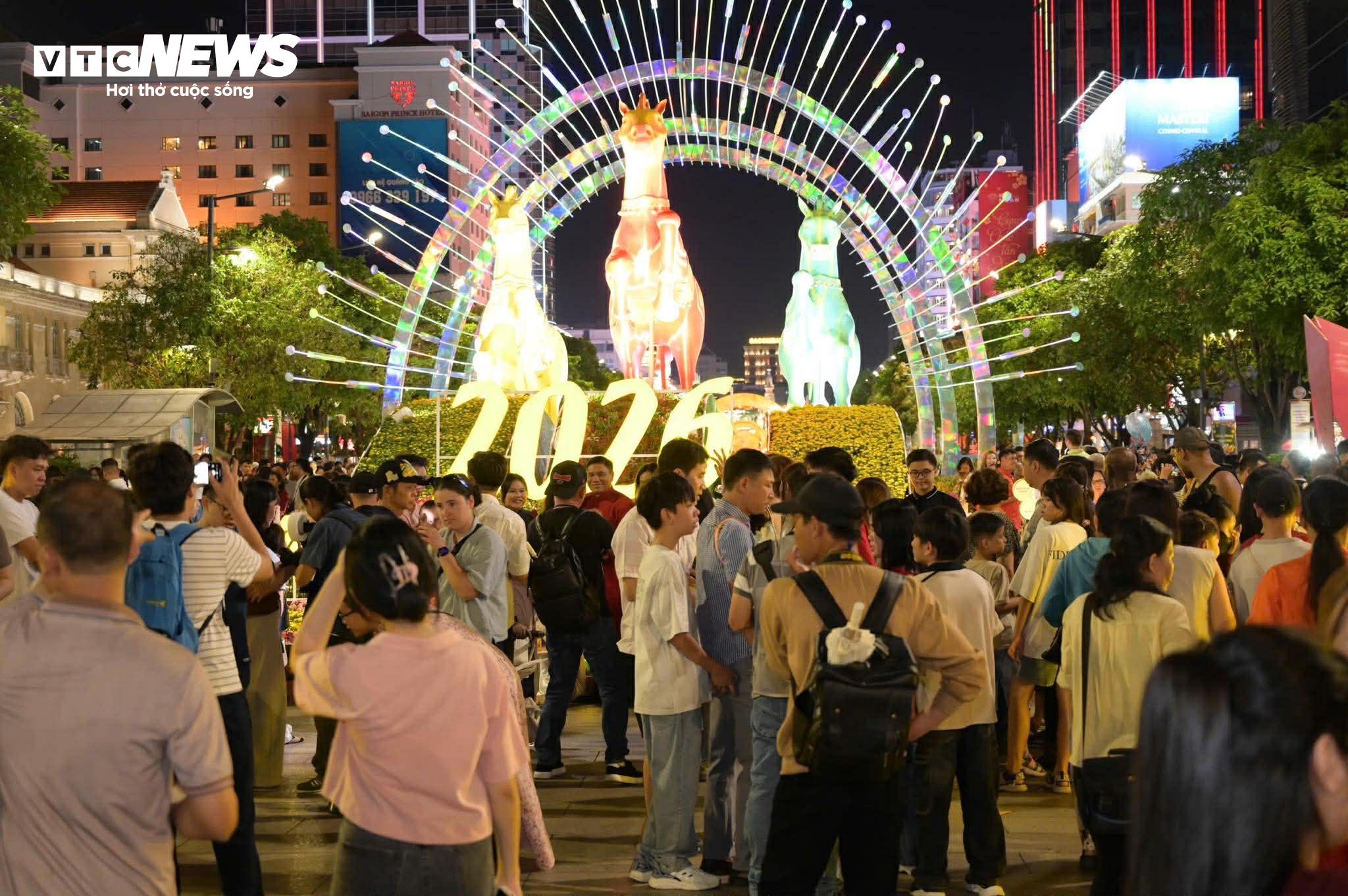 Tại phố đi bộ Nguyễn Huệ (TP.HCM), đông đảo người dân và du khách đổ về tham quan, chụp ảnh, du xuân, tạo nên không khí nhộn nhịp ngay từ đầu giờ tối. Trước lượng người tập trung ngày càng đông, Phòng Cảnh sát giao thông (PC08), Công an TP.HCM khuyến cáo người dân chủ động tìm hiểu lộ trình di chuyển, cập nhật thông tin phân luồng và các điểm giữ xe quanh khu vực đường hoa, nhằm hạn chế tình trạng đi vòng nhiều lần, góp phần giảm ùn ứ giao thông.