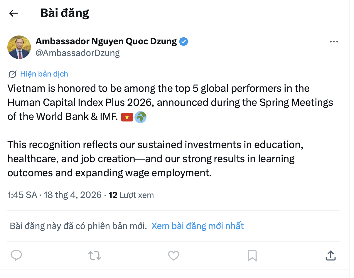 Việc được vinh danh trong HCI+ 2026 khẳng định những nỗ lực của Việt Nam trong việc đặt con người là trung tâm của chiến lược phát triển, nâng cao chất lượng giáo dục và chăm sóc sức khỏe; tăng cường kết nối giữa đào tạo và thị trường lao động và thúc đẩy tăng trưởng bao trùm và bền vững.