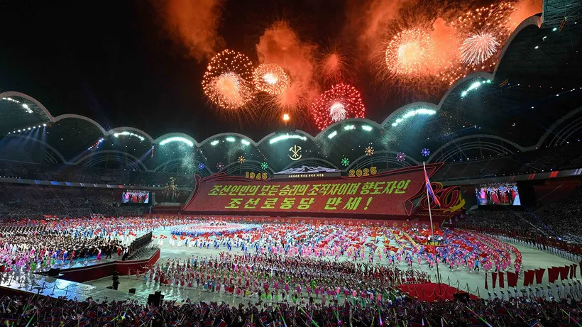 Chương trình nghệ thuật kỷ niệm 80 năm thành lập Đảng Lao động Triều Tiên tại Bình Nhưỡng, ngày 9-10-2025. Ảnh: THX/TTXVN