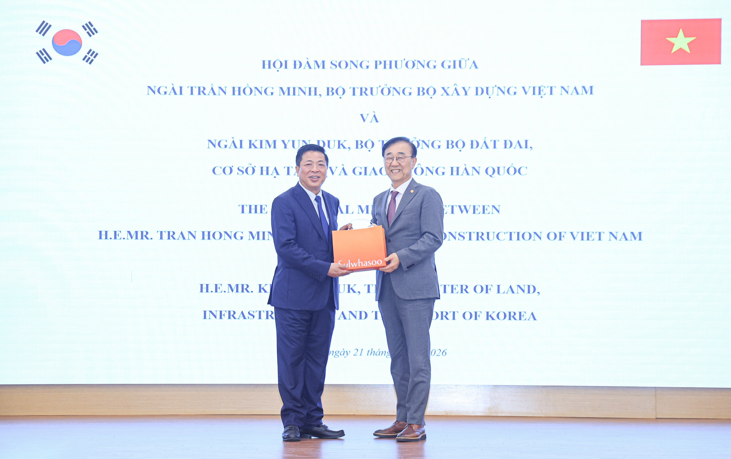 Sáng 21/4, tại trụ sở Bộ Xây dựng đã diễn ra cuộc hội đàm song phương giữa Bộ trưởng Trần Hồng Minh và Bộ trưởng Bộ Đất đai, Cơ sở hạ tầng và Giao thông Hàn Quốc Kim Yun-duk, nhằm thúc đẩy hợp tác giữa hai bên trong các lĩnh vực hạ tầng giao thông và đô thị.