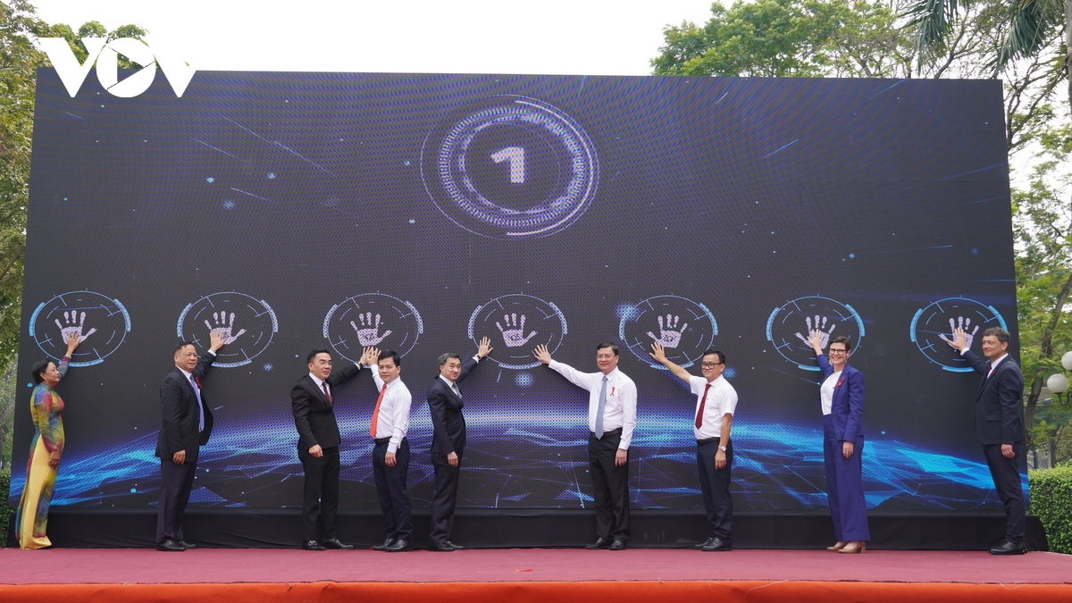 Lãnh đạo Bộ Y tế và lãnh đạo TP.HCM thực hiện nghi thức ấn nút hưởng ứng, cam kết đồng hành chấm dứt dịch AIDS tại Việt Nam vào năm 2030