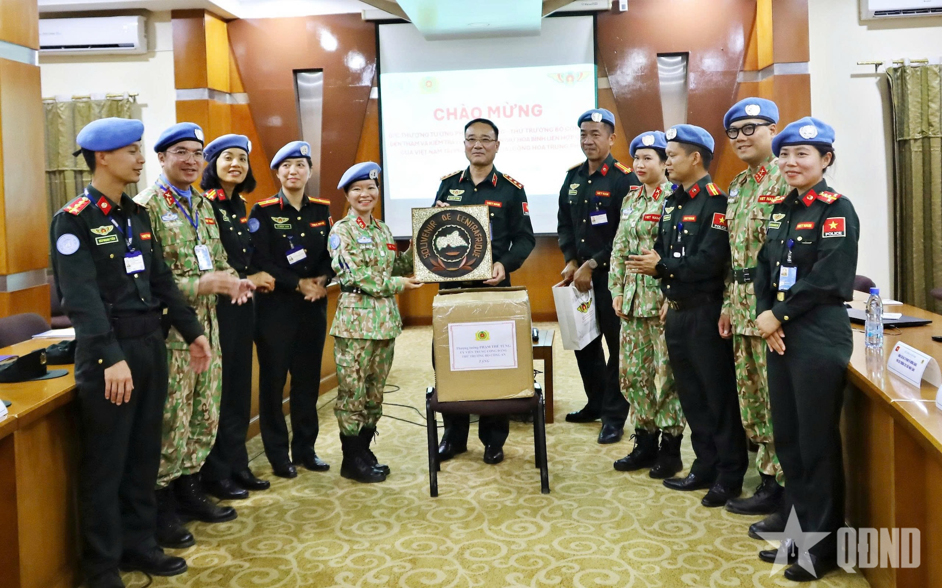 Thượng tướng Phạm Thế Tùng và đoàn công tác gặp mặt hai tổ công tác Bộ Quốc phòng và Bộ Công an đang làm nhiệm vụ GGHB tại Phái bộ MINUSCA.