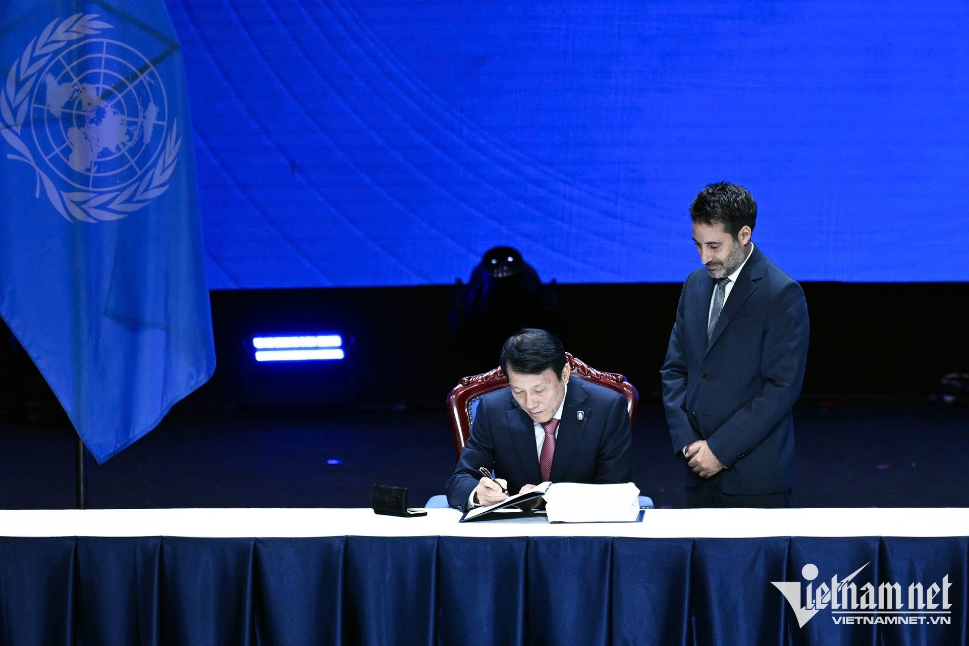 Sau phiên khai mạc, Chủ tịch nước Lương Cường và Tổng Thư ký LHQ đã chứng kiến đại diện được ủy quyền của Việt Nam và gần 70 quốc gia ký Công ước. Công ước sẽ tiếp tục được mở ký sau đó tại Trụ sở LHQ tại New York.