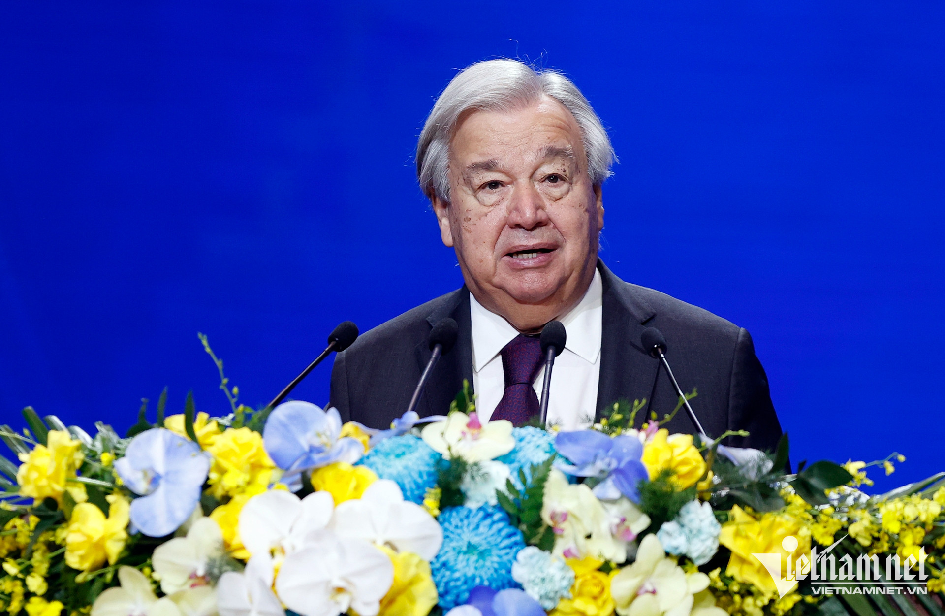 "Điều đó khiến Hà Nội trở thành nơi đăng cai lý tưởng cho sự kiện hôm nay - một thành phố thể hiện tinh thần của kỷ nguyên số: đổi mới, tiềm năng và kết nối. LHQ tự hào được hợp tác với Việt Nam để cùng nhau làm nên ngày trọng đại này", Tổng Thư ký phát biểu.