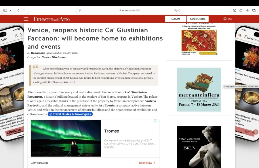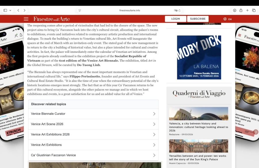 Bài báo Ý về triển lãm mỹ thuật Việt Nam tại cung điện lịch sử hơn 500 năm tuổi Ca' Giustinian Faccanon.