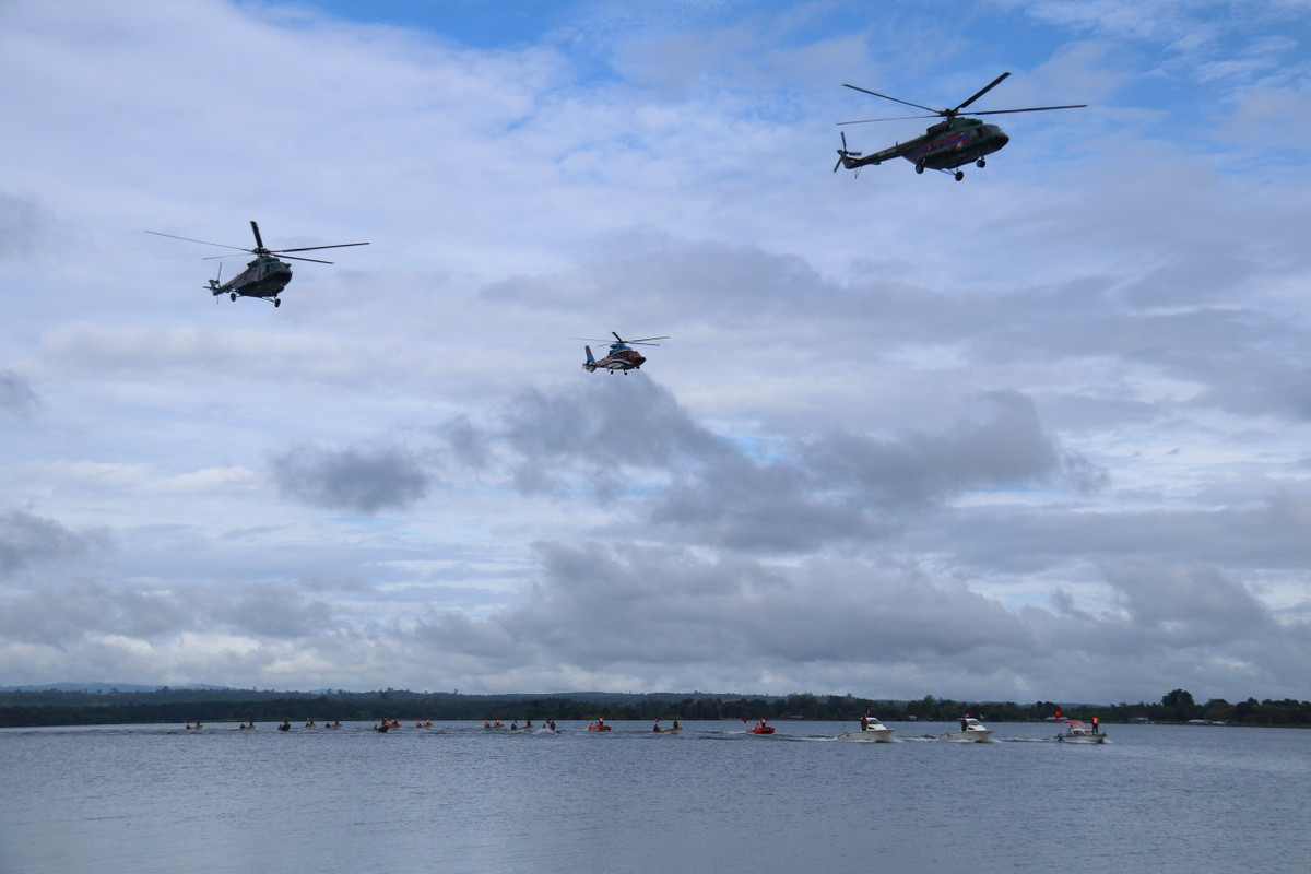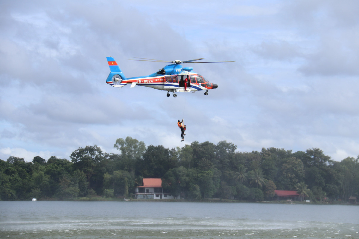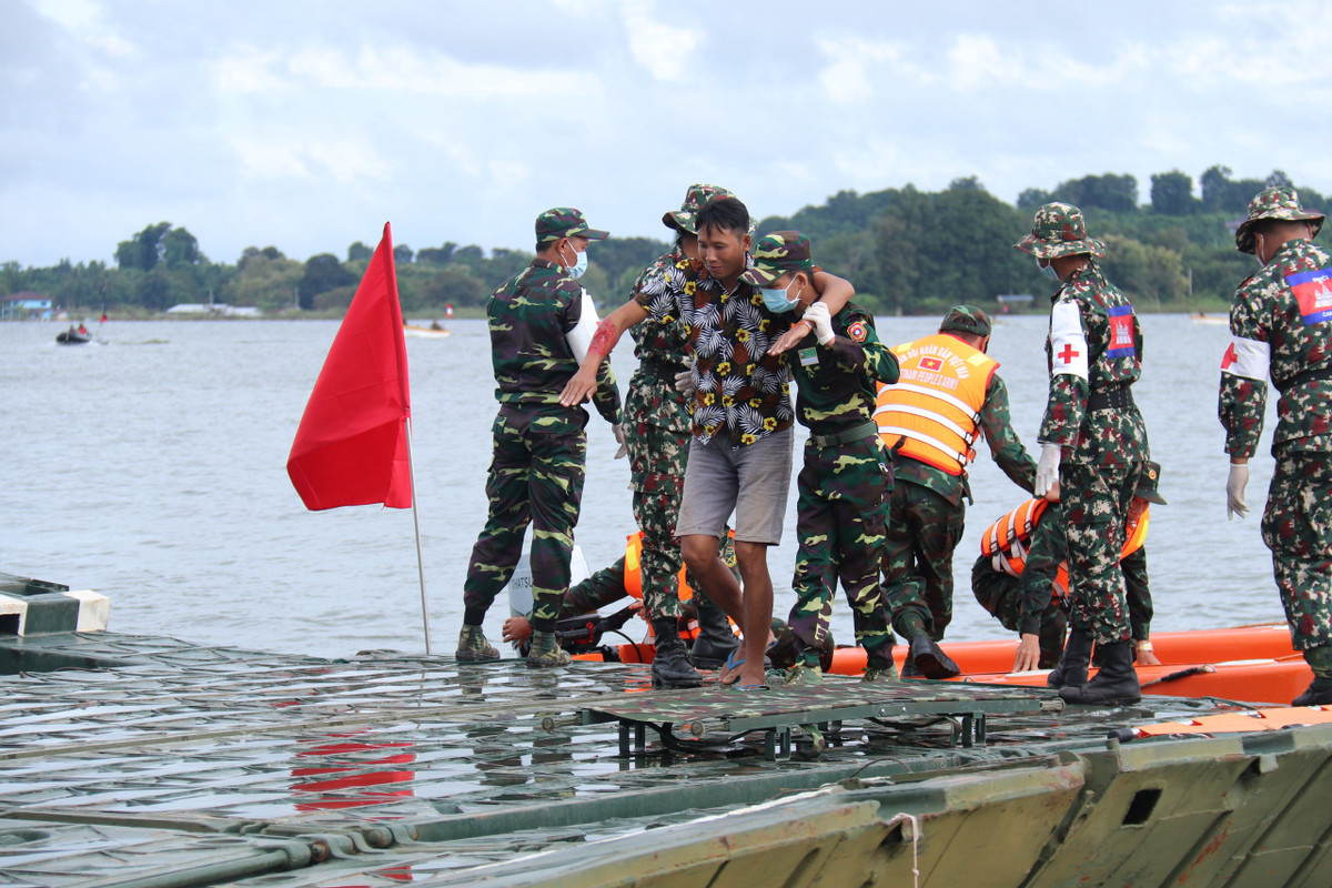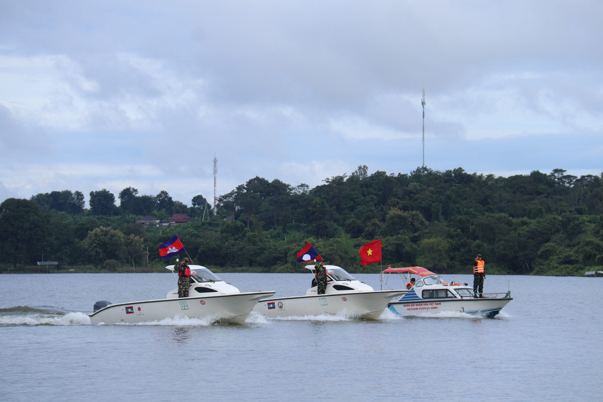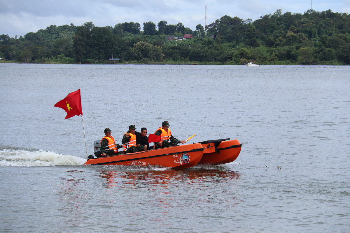 Đối với nội dung tìm kiếm, cứu hộ và giúp đỡ người gặp nạn do lũ lụt, lực lượng quân đội ba nước thực hành tuần tra, tìm kiếm người gặp nạn trong phạm vi khu vực lũ lụt theo các điểm bằng thuyền và máy bay không người lái.