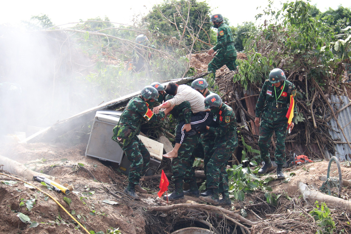 Diễn tập cứu nạn nhân trong vụ sạt lở đất.