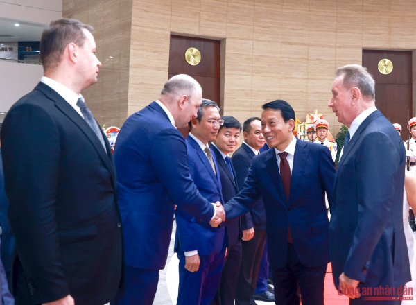 Bộ trưởng Lương Tam Quang và Giám đốc Cơ quan Vệ binh quốc gia Liên bang Nga Zolotov Viktor cùng các đại biểu.