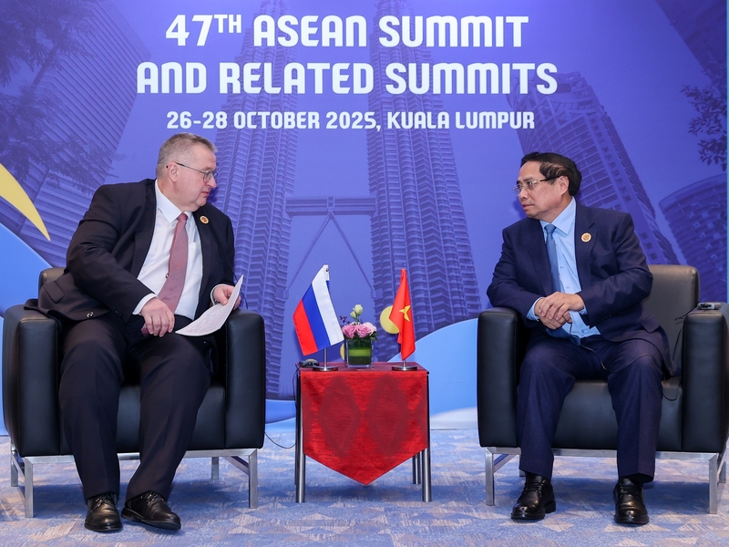 Chiều 27/10, tại Kuala Lumpur, Malaysia, Thủ tướng Chính phủ Phạm Minh Chính đã có cuộc gặp với Phó Thủ tướng Nga Alexey Overchuk nhân dịp tham dự Hội nghị Cấp cao ASEAN lần thứ 47 và các hội nghị cấp cao liên quan.