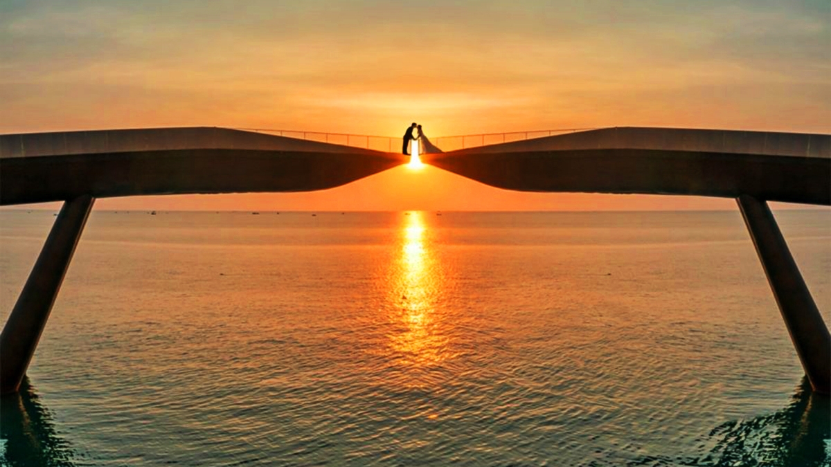 Cầu Nụ Hôn tạo dấu ấn nhờ thiết kế độc đáo giàu tính nghệ thuật, lấy cảm hứng từ câu chuyện tình yêu lãng mạn. Hai nhánh cầu vươn ra biển, chạm gần nhau dưới ánh hoàng hôn đã trở thành biểu tượng mới của Phú Quốc. Công trình nhanh chóng thu hút hàng triệu du khách, trở thành điểm check-in mang tính toàn cầu.