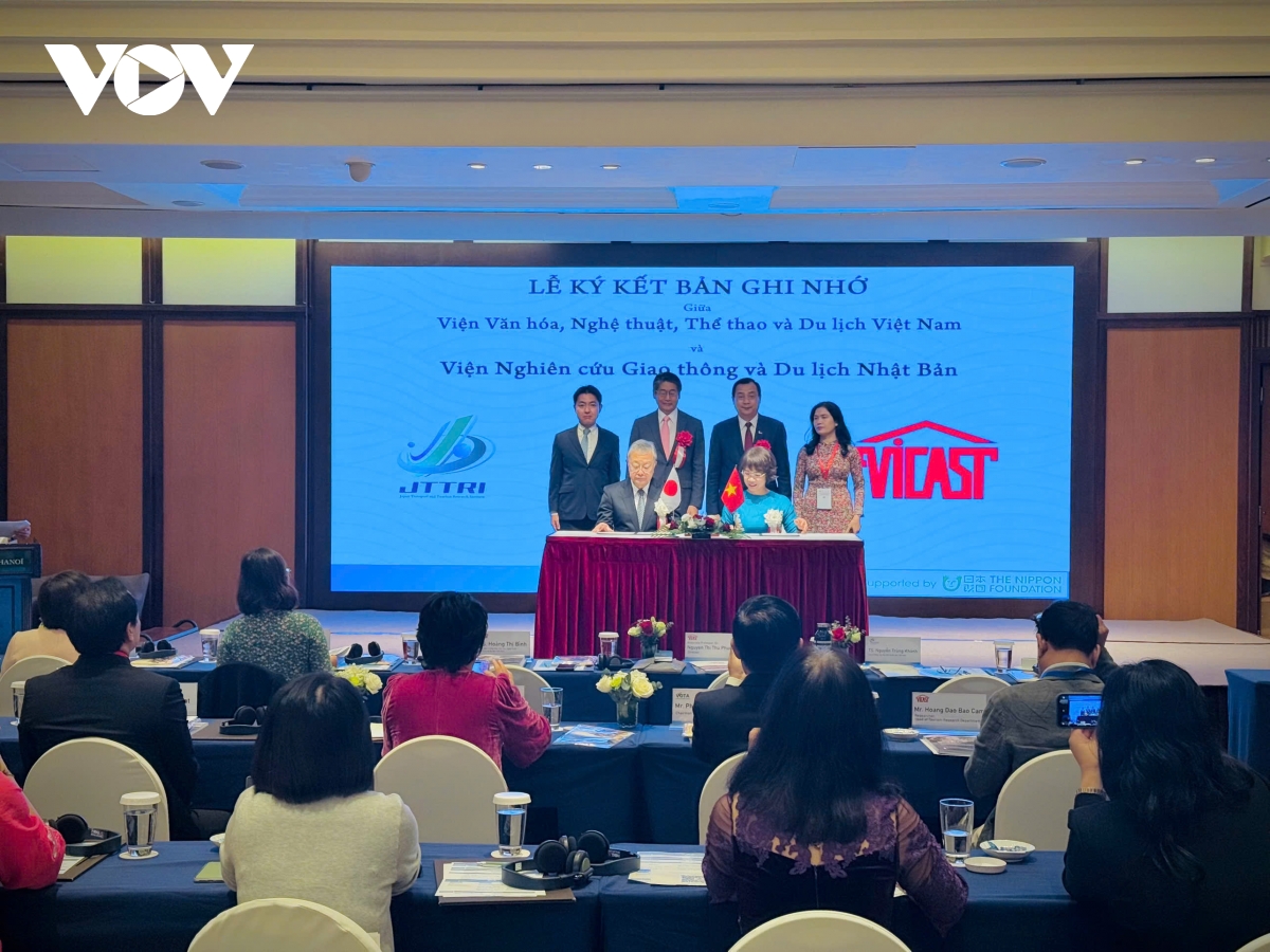Viện Văn hóa, Nghệ thuật, Thể thao và Du lịch Việt Nam (VICAST) ký hợp tác với Viện Nghiên cứu Giao thông và Du lịch Nhật Bản (JTTRI) tại hội thảo.