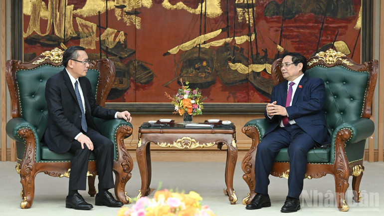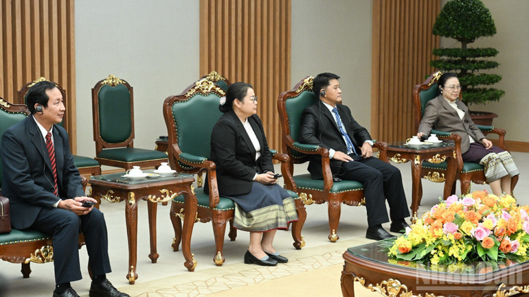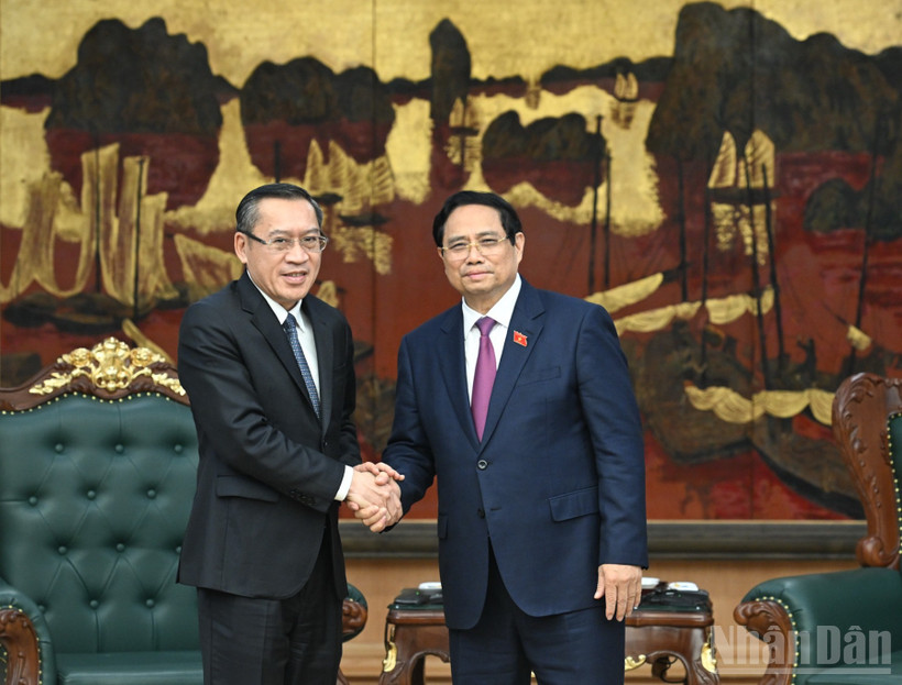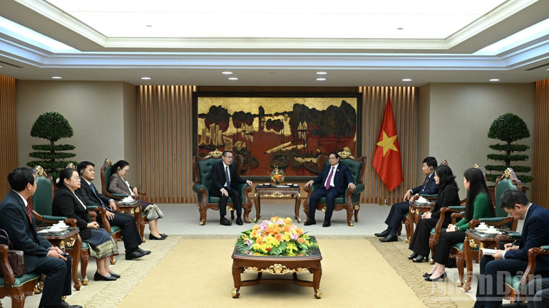 Thủ tướng Chính phủ Phạm Minh Chính tiếp Bộ trưởng Lao động và Phúc lợi Lào Phosay Sayasone. (Ảnh: TRẦN HẢI)