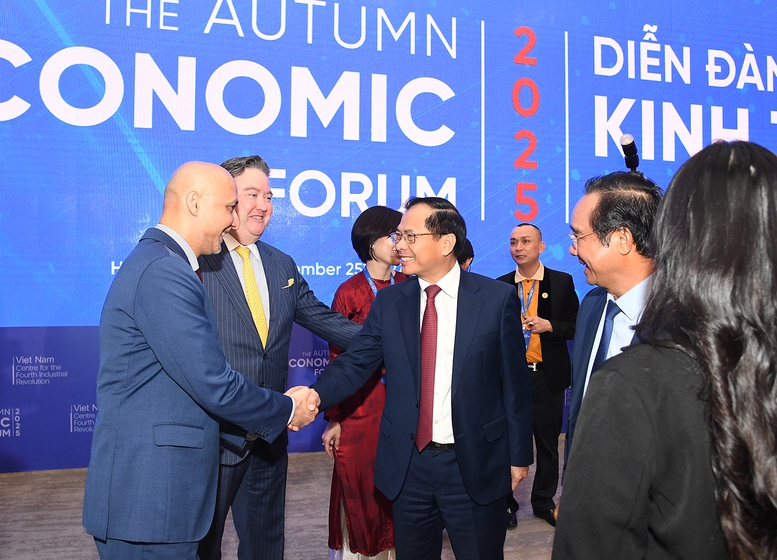 Trưa 26/11, Phó Thủ tướng Bùi Thanh Sơn cùng Chủ tịch UBND TPHCM Nguyễn Văn Được chủ trì phiên ăn trưa làm việc với Trưởng đoàn các nước, các đại sứ, trưởng đại diện các tổ chức quốc tế, lãnh đạo doanh nghiệp tham dự Diễn đàn Kinh tế mùa Thu 2025.