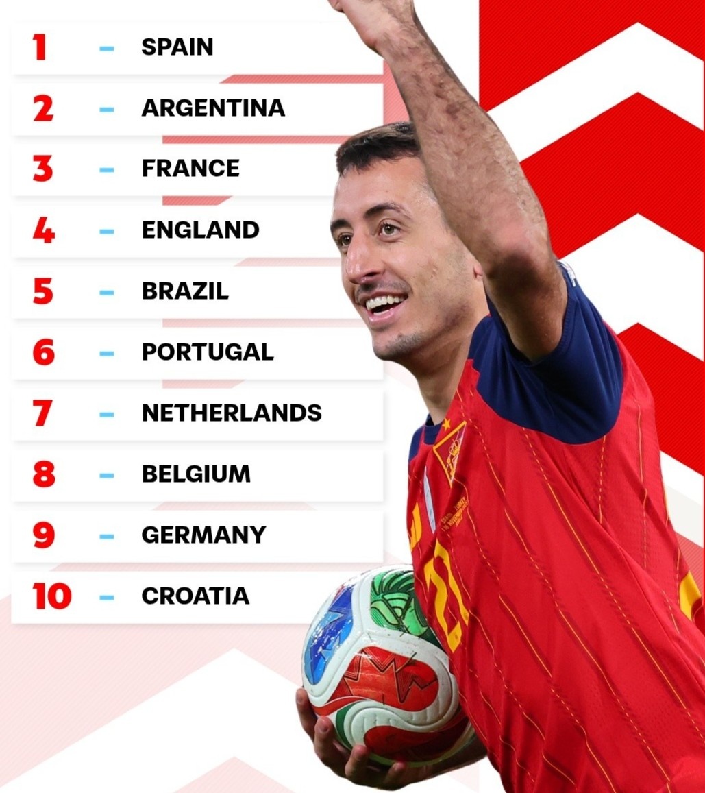 BXH top 10 đội mạnh nhất không có sự thay đổi so với tháng trước.