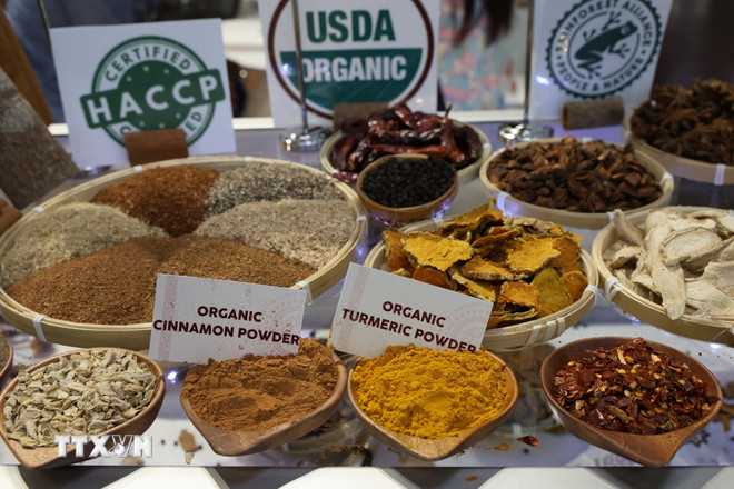 Mặt hàng gia vị hữu cơ của Việt Nam được giới thiệu tại Biofach 2026. (Ảnh: Thu Hằng/TTXVN)