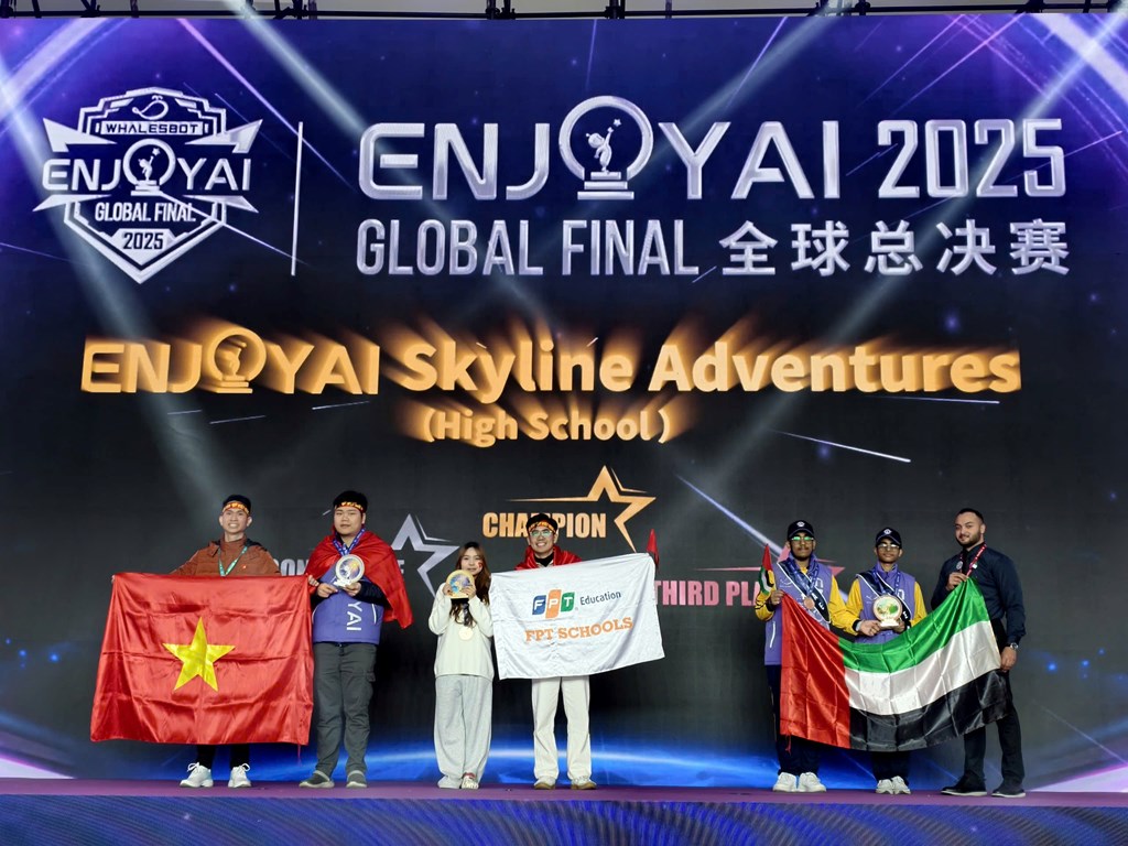 Thành tích của các đội tuyển của Việt Nam tại cuộc thi Enjoy AI 2025. Theo đó, giải Cyber City; quán quân: Đội Golden Star Wave - Nguyễn Lê Thiên Phúc (HLV: Nguyễn Thanh Phương)