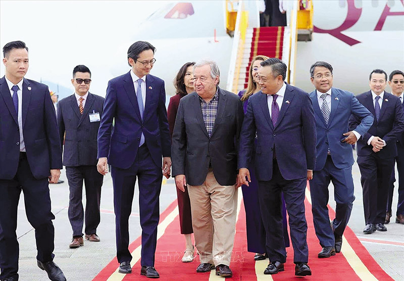 Tổng thư ký Liên hợp quốc António Guterres đến Việt Nam tham dự Lễ mở ký Công ước Hà Nội. Ảnh: TTXVN