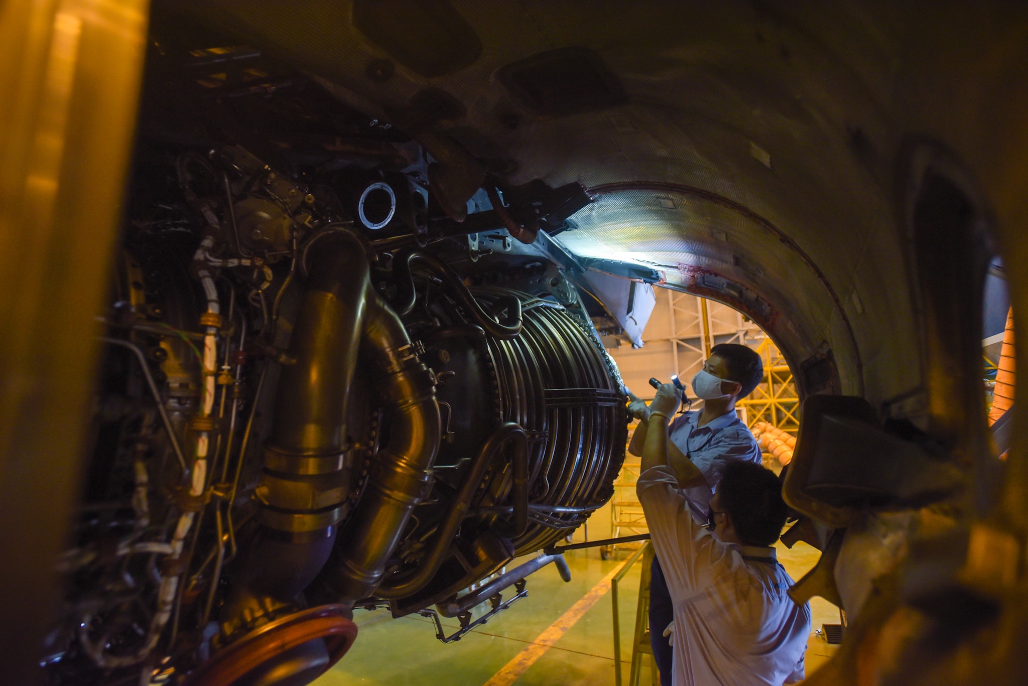 Bảo dưỡng động cơ máy bay tại Công ty Kỹ thuật máy bay (VAECO). Ảnh: Khánh Huy