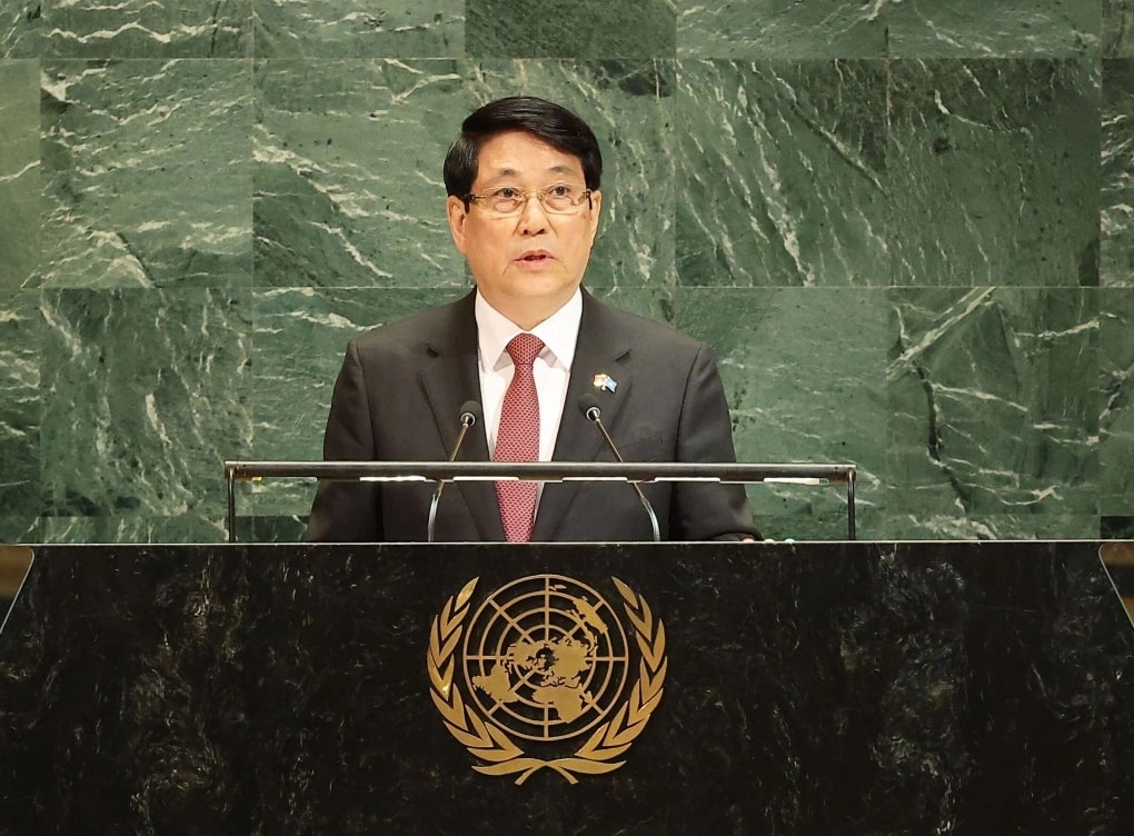 Chủ tịch nước Lương Cường phát biểu trước Đại hội đồng Liên hợp quốc ngày 23-9-2025. Ảnh: TTXVN