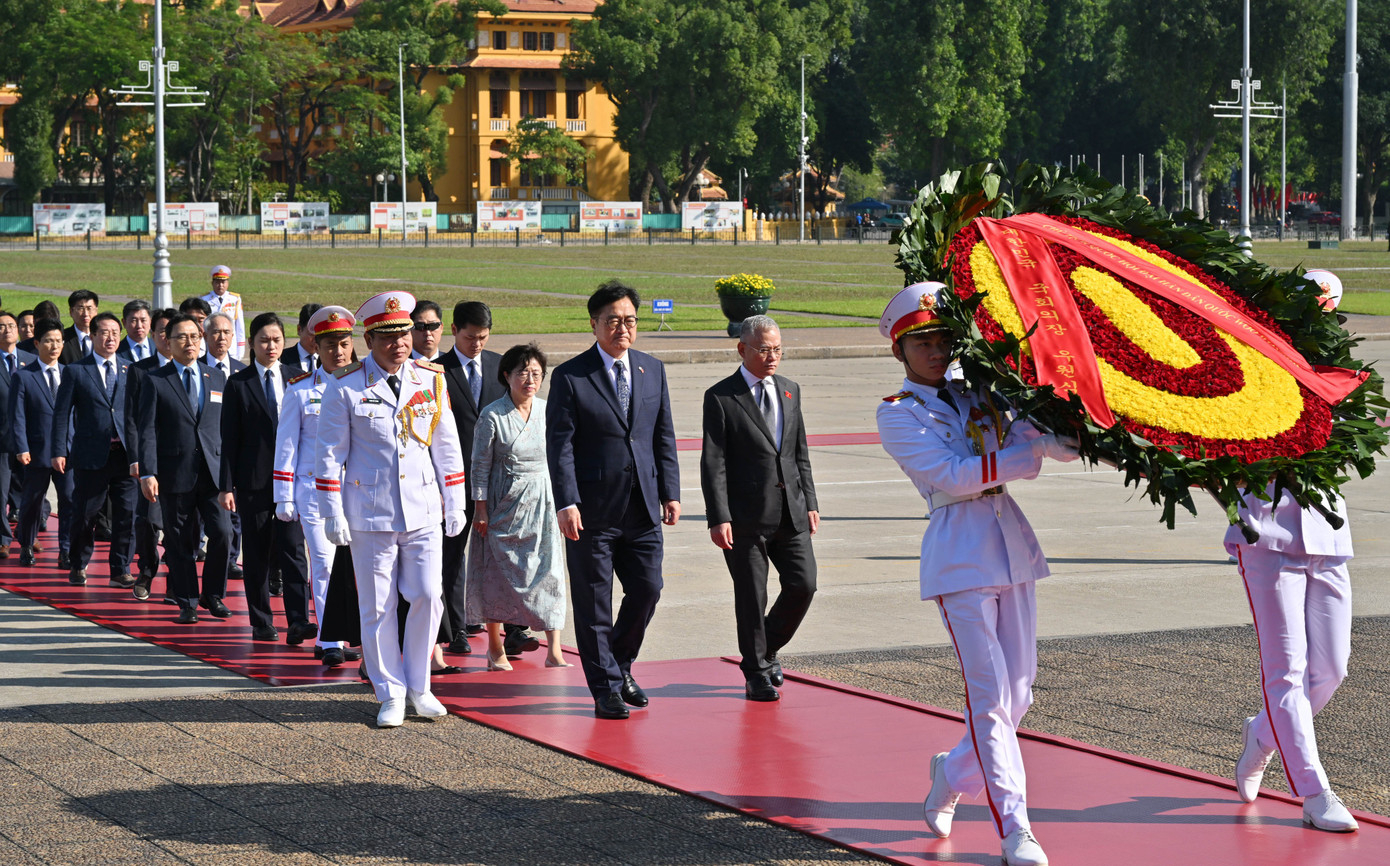 Chủ tịch Quốc hội Hàn Quốc và đoàn công tác vào Lăng viếng Chủ tịch Hồ Chí Minh. Ảnh: Như Ý
