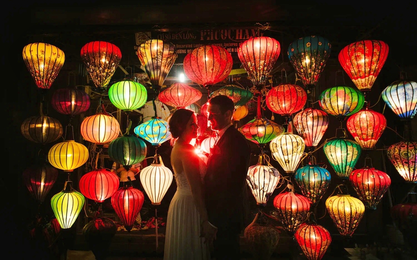 Các cặp đôi khách du lịch tham gia tour Đà Nẵng - Hội An, có thể thêm sắc màu lung linh của những chiếc đèn lồng truyền thống Việt Nam tuyệt đẹp vào album ảnh cưới. Ảnh: hitchbird