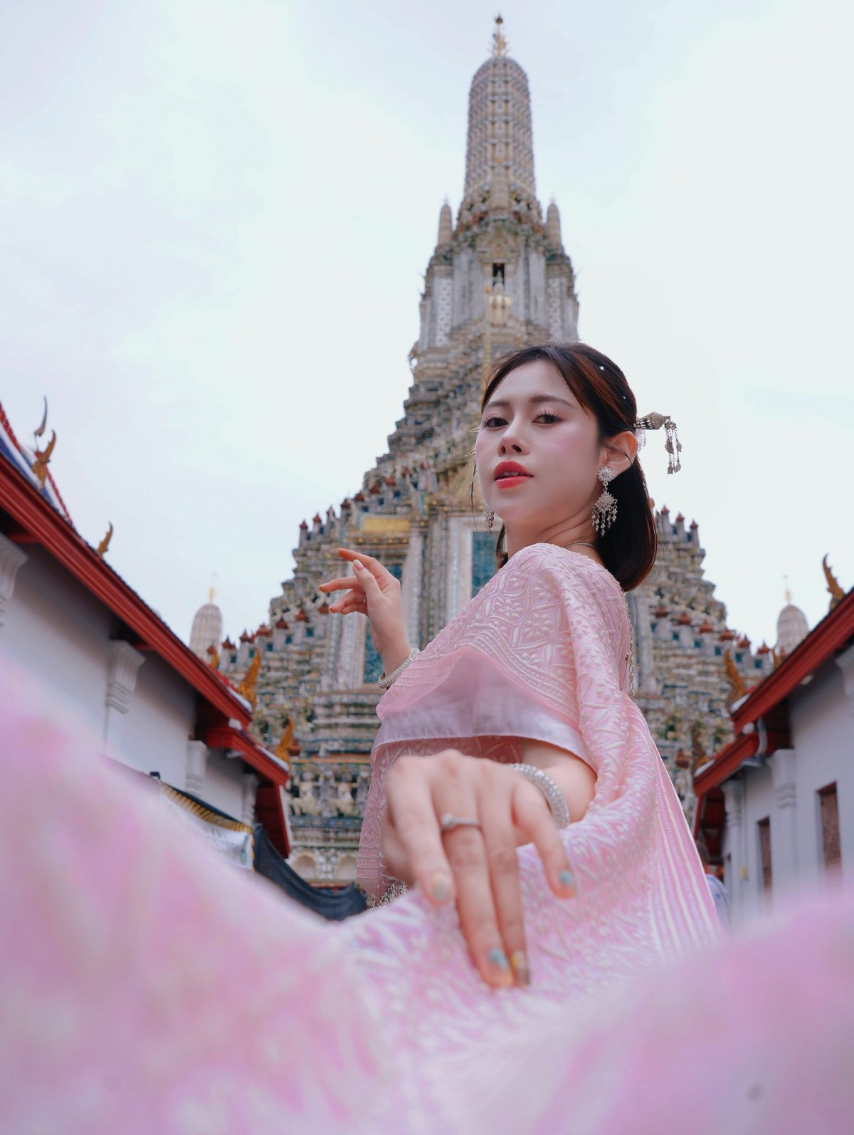Không cầu kỳ, bộ ảnh được xây dựng theo phong cách tự nhiên giữa ngôi đền thiêng liêng tại thủ đô Bangkok - Thái Lan.
